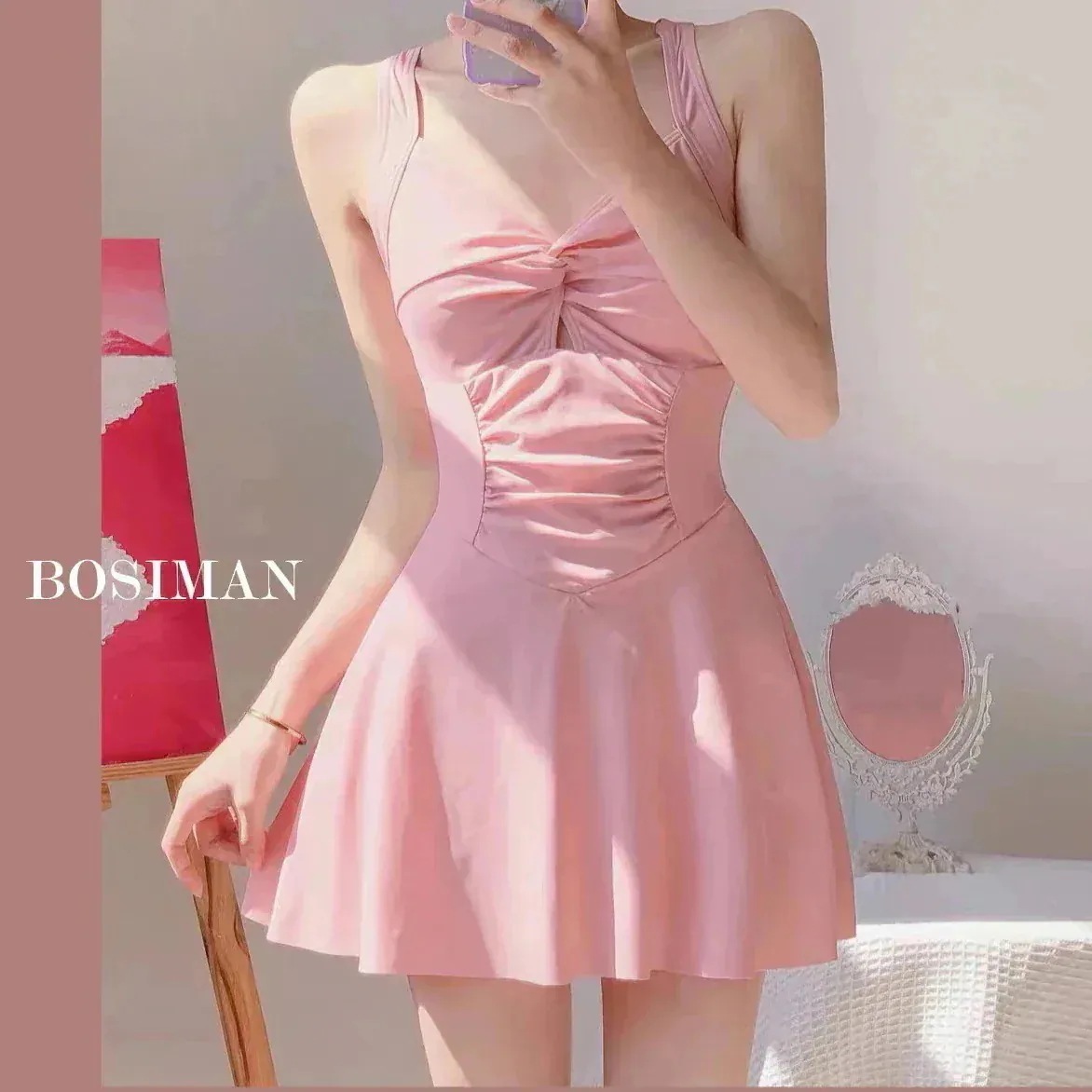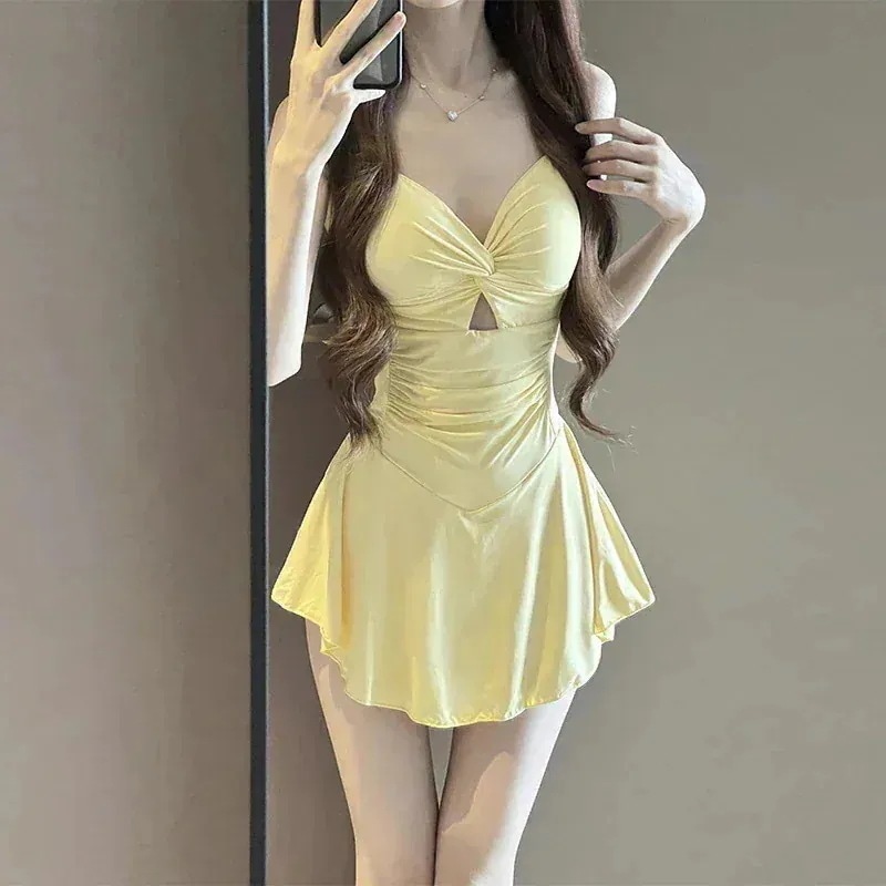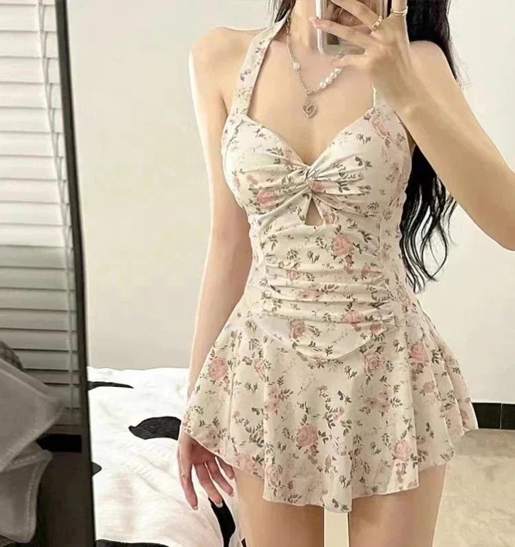 セクシー ワンピース水着 レディース 韓国風 体型カバー 着痩せ スカートタイプ 可愛い ホルターネック 温泉用 水着セット