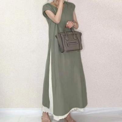 韓国ファッション シャツワンピース春夏 ロング ニットワンピース パーティードレス ドレスワンピースレディースマキシワンピース春夏半袖ワンピースゆったり韓国風オシャレ着痩