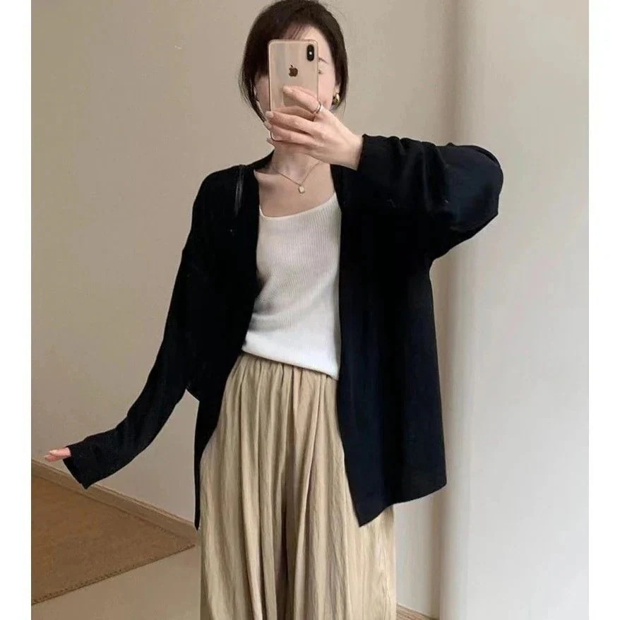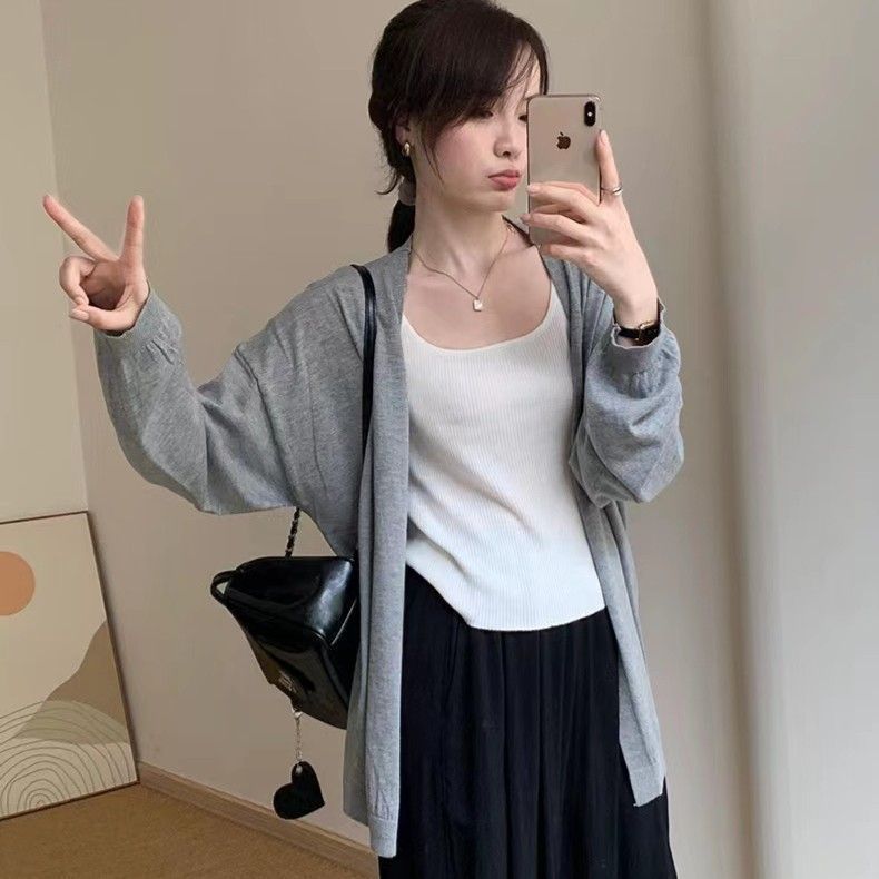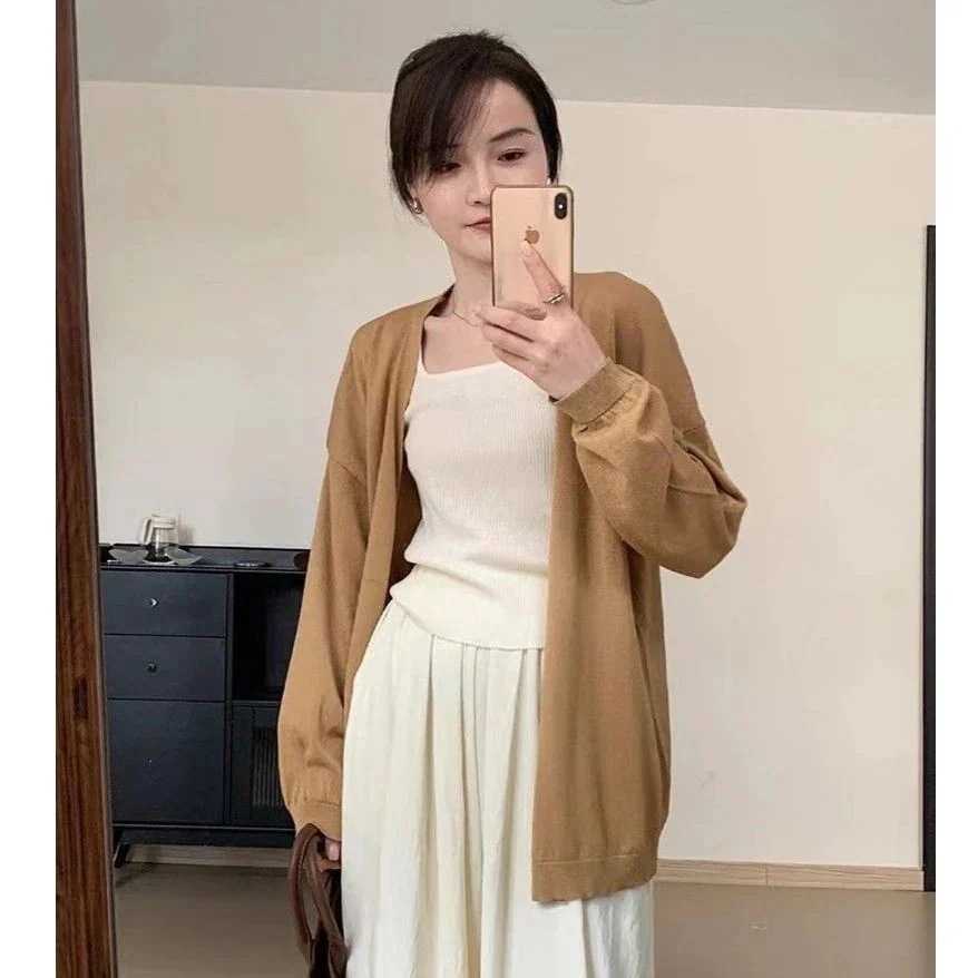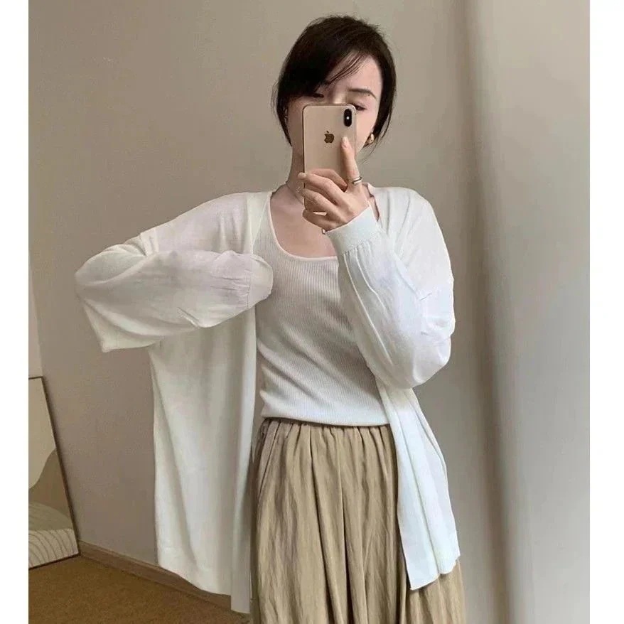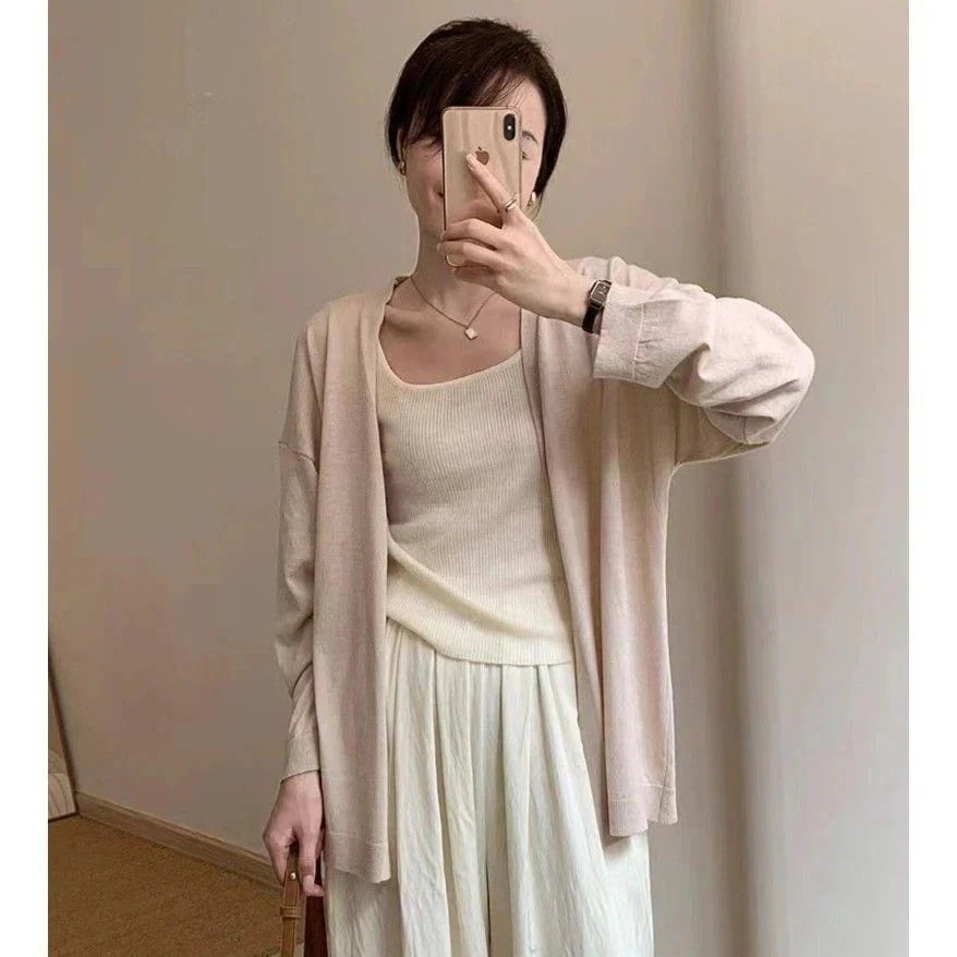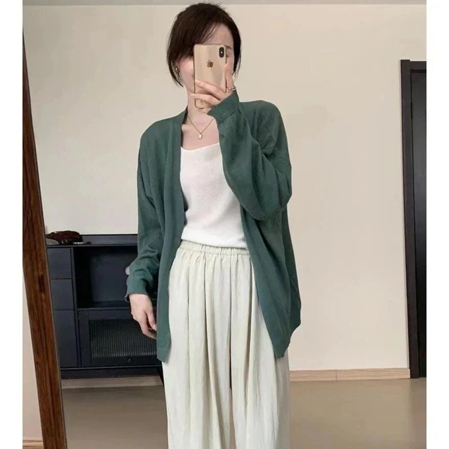 春 シアーカーディガン 軽薄で肌触り ニットカーディガン 無地 セミロング ニットセーター 百掛け カーディガン