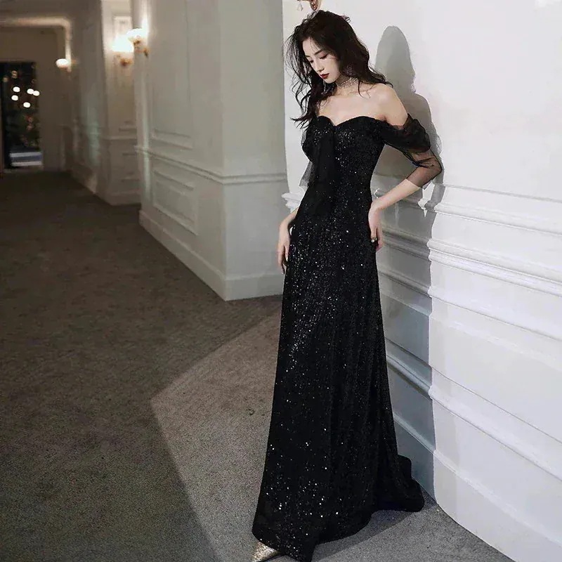 2026新品追加パーティドレス ブラックフランス ワンピース 韓国ファッション 卒業式 結婚式 誕生日 演奏会 花嫁 司会 ドレス