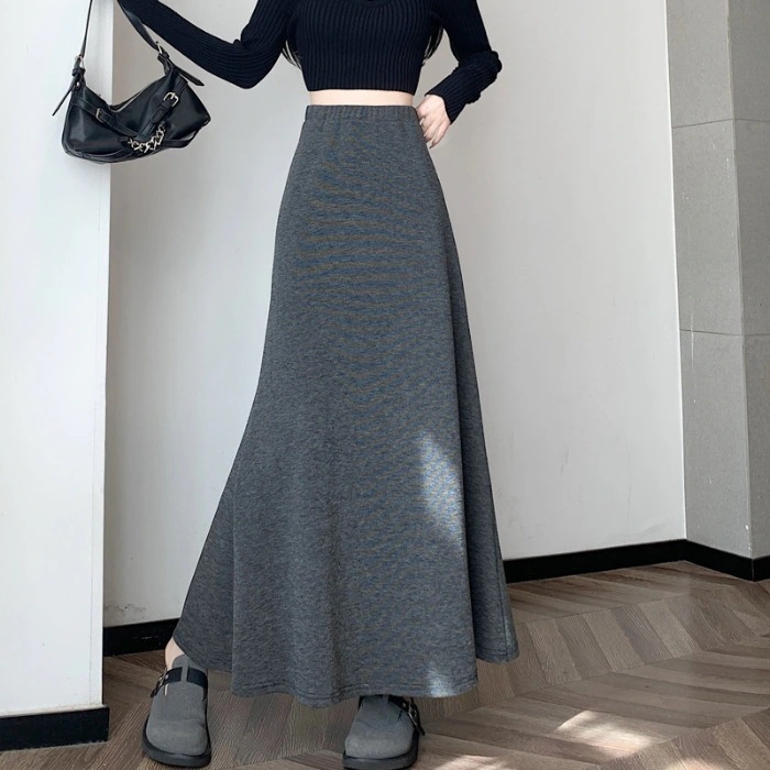 2026 春 新作 スカート 流行り 気質 スカート ハイウエスト 着痩せ 伸縮性のあるウエスト ロングスカート ゆったり シンプル 韓国ファッション プリーツスカート