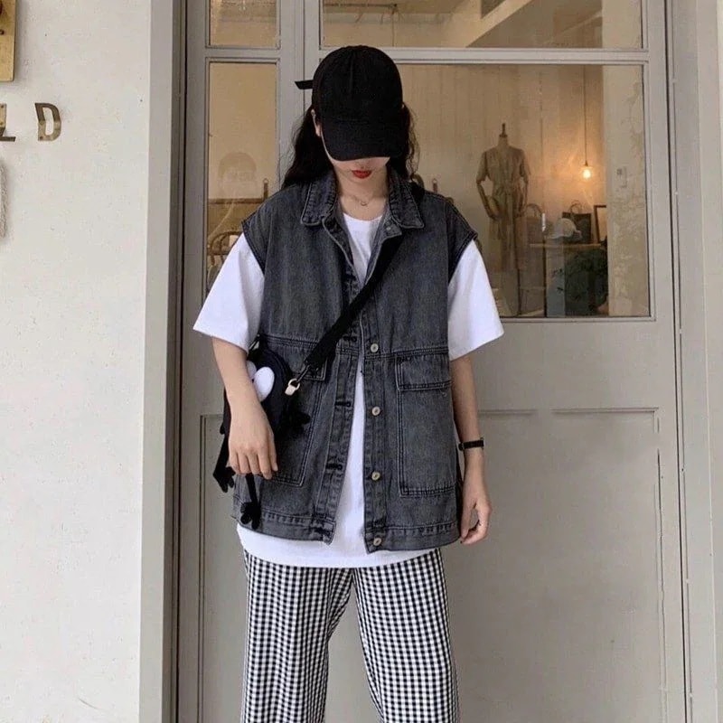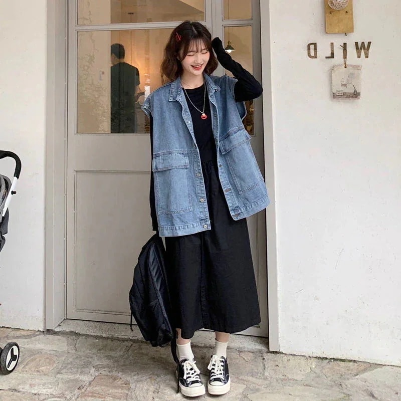 ベストノースリーブデニムジャケット韓国ファッション秋ジャケット デニムジャケット ジャケット秋アウター ジャケットゆったり ベスト デニムジャケット