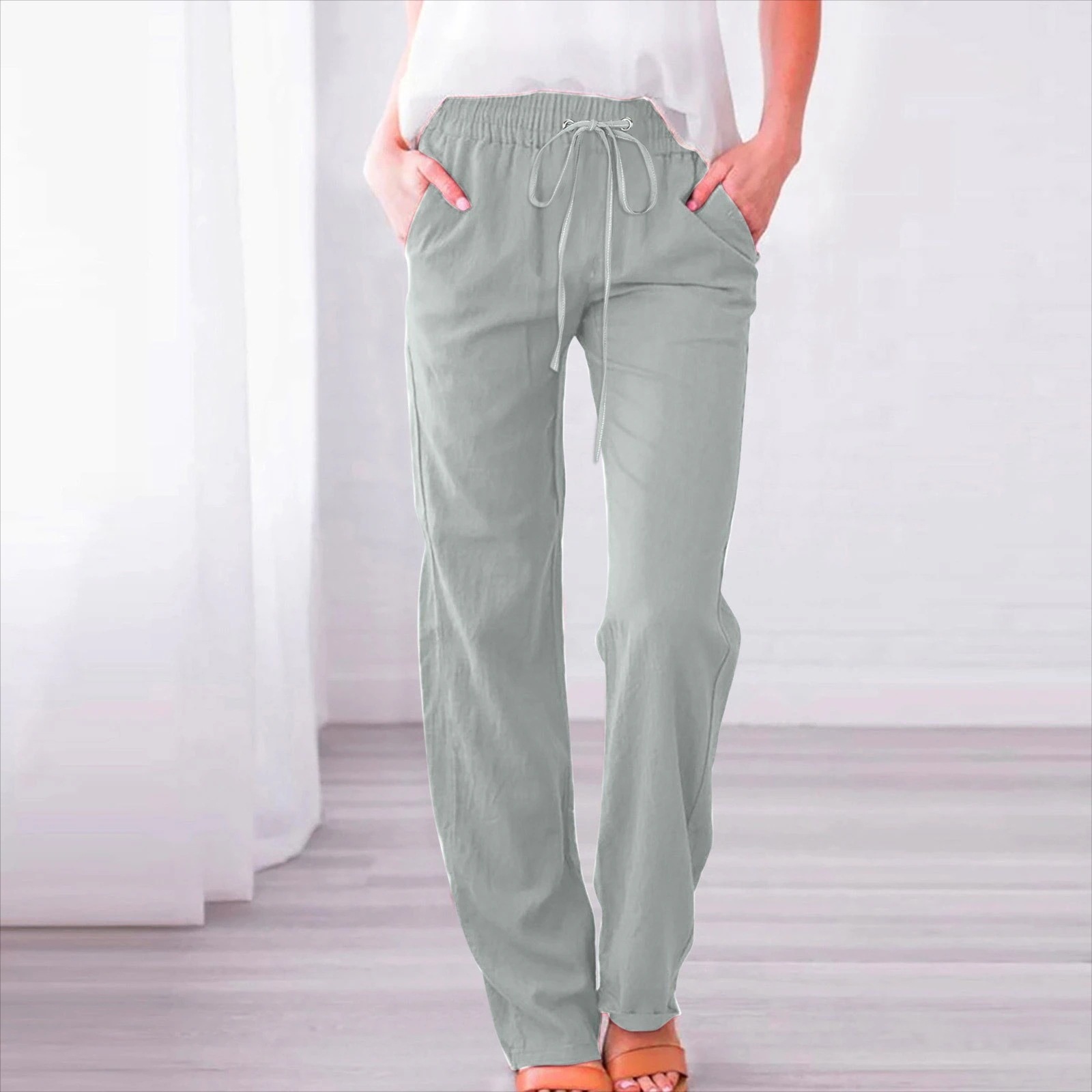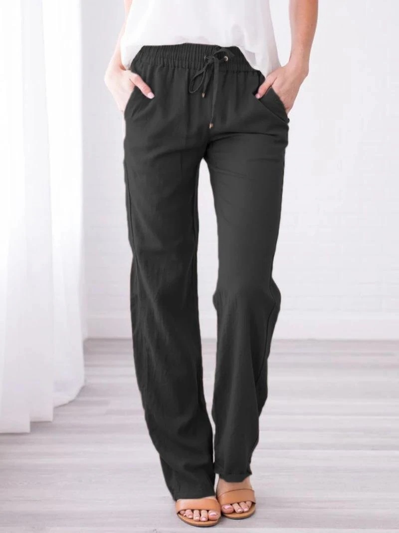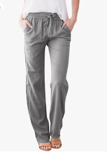 快速出荷 18色選べる無地綿麻素材ドローコードゆったりカジュアルワイドパンツ
