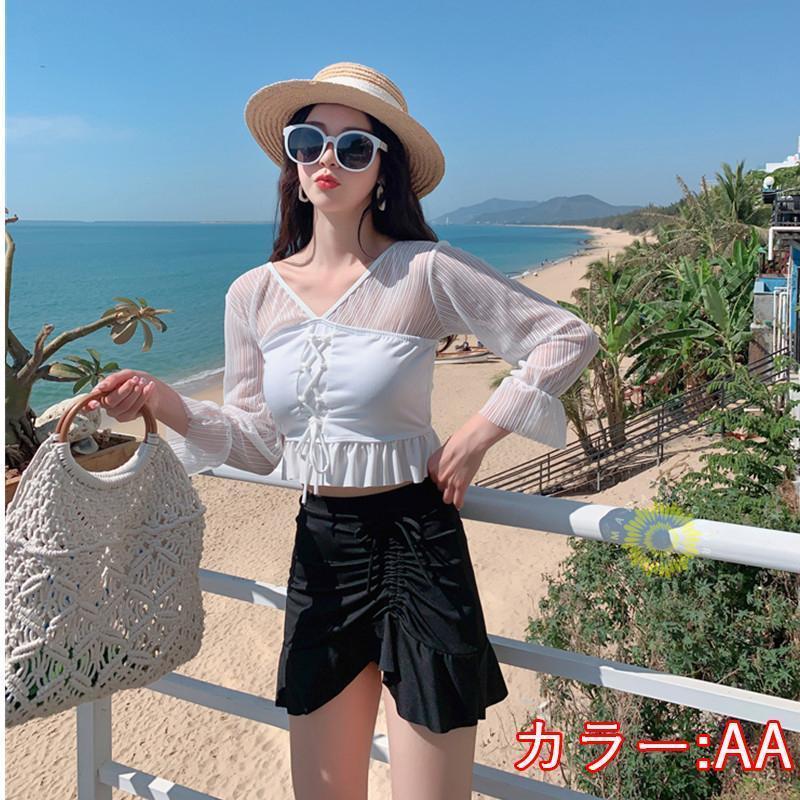 上下セット 水着 レディース 体型カバー ワンピース オールインワン オフショルダー 超人気 フレア 大きいサイズ レディース 水着 中学生 高校生 10代 20代