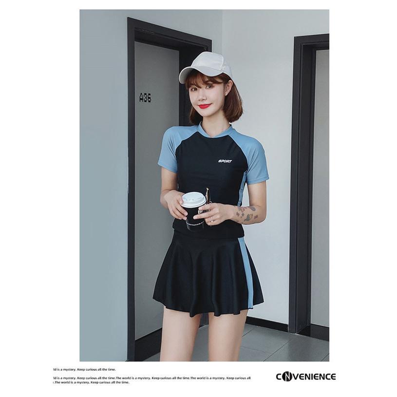 水着レディース 20代30代40代50代 ビキニ みずぎ セパレート 製品気質 体型カバー 半袖 2点セット タンキニ フレアスカート フィットネス水着 スポーツ ビーチ プール