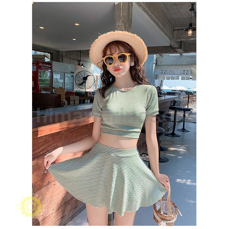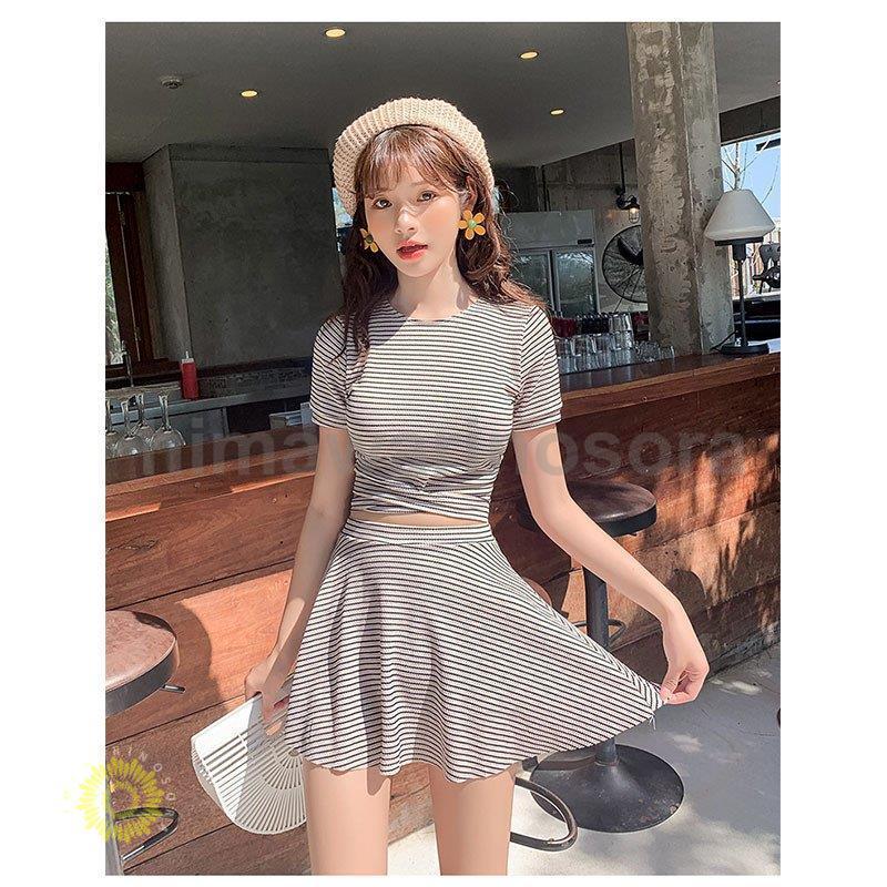 水着レディース 体型カバー ビキニ 大きいサイズ ストライプ柄 タンキニ 新品 大人気 スカートセパレート フリル フレア スカートセット上下セット オトナ女子ママ水着