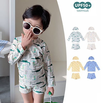 子供用日焼け止めツーピース水着 男の子用 長袖速乾水着