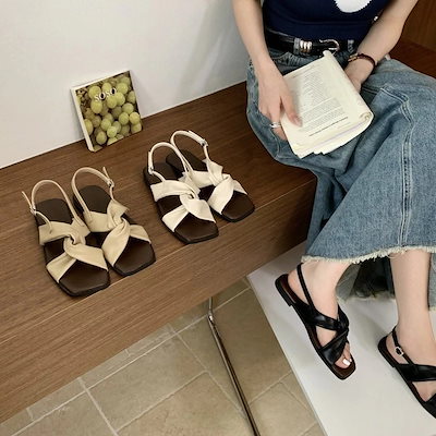 25 クロスストラップ サンダル レディース アウター サマー フラット サンダル