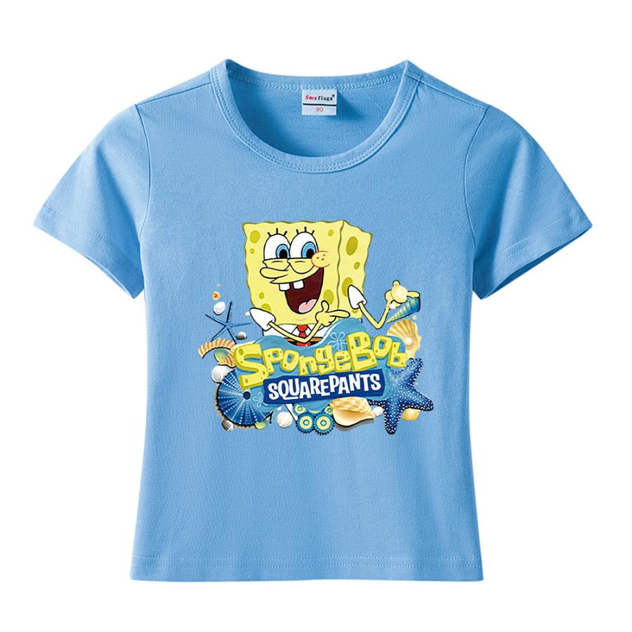 【14色展開】春夏新作 子供服 半袖Tシャツ スポンジボブ 100%綿 ラウンドネック 丸首 男の子 女の子 子ども服 小学生から幼稚園児に最適