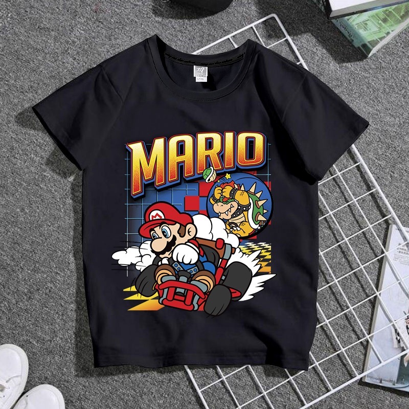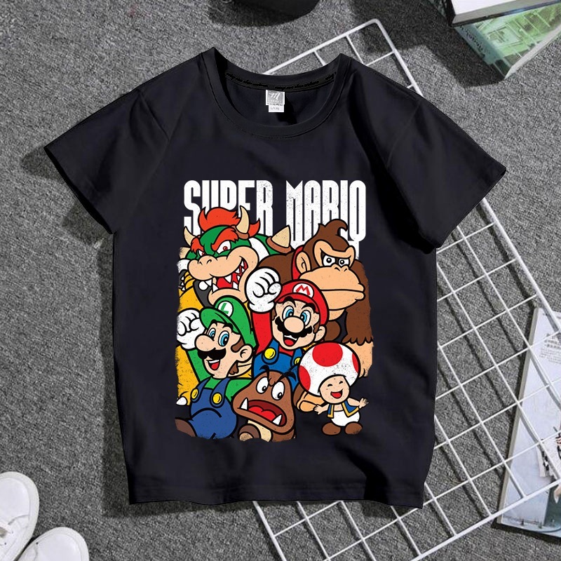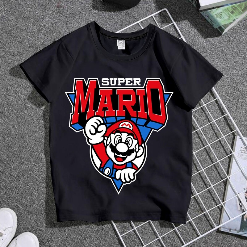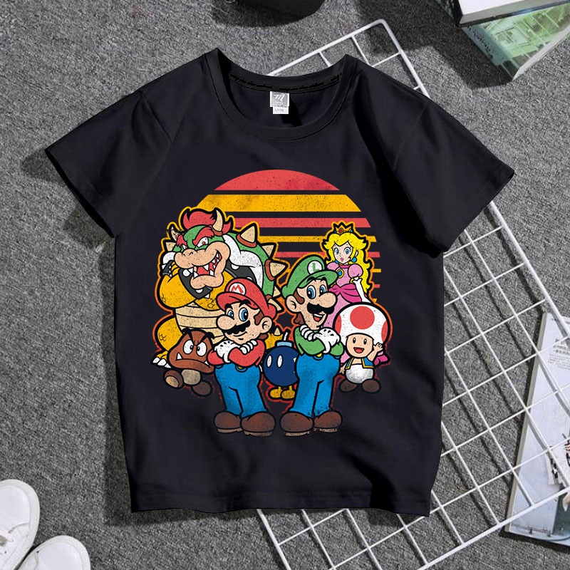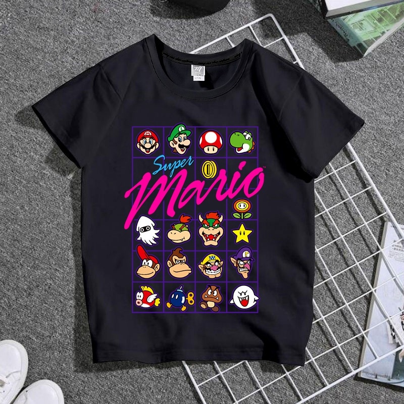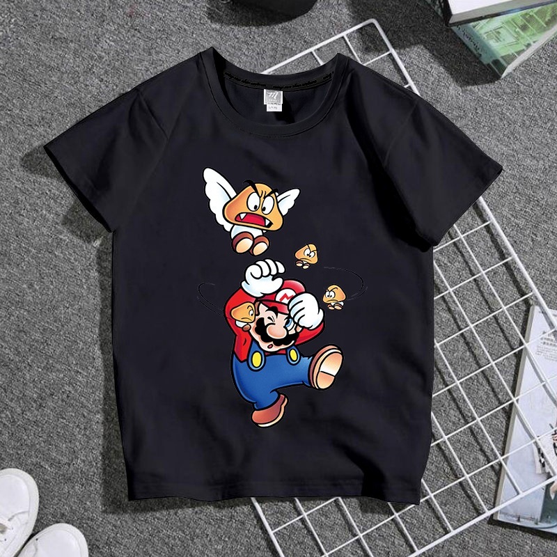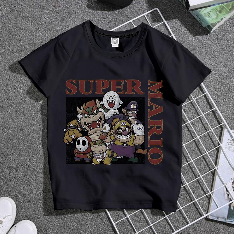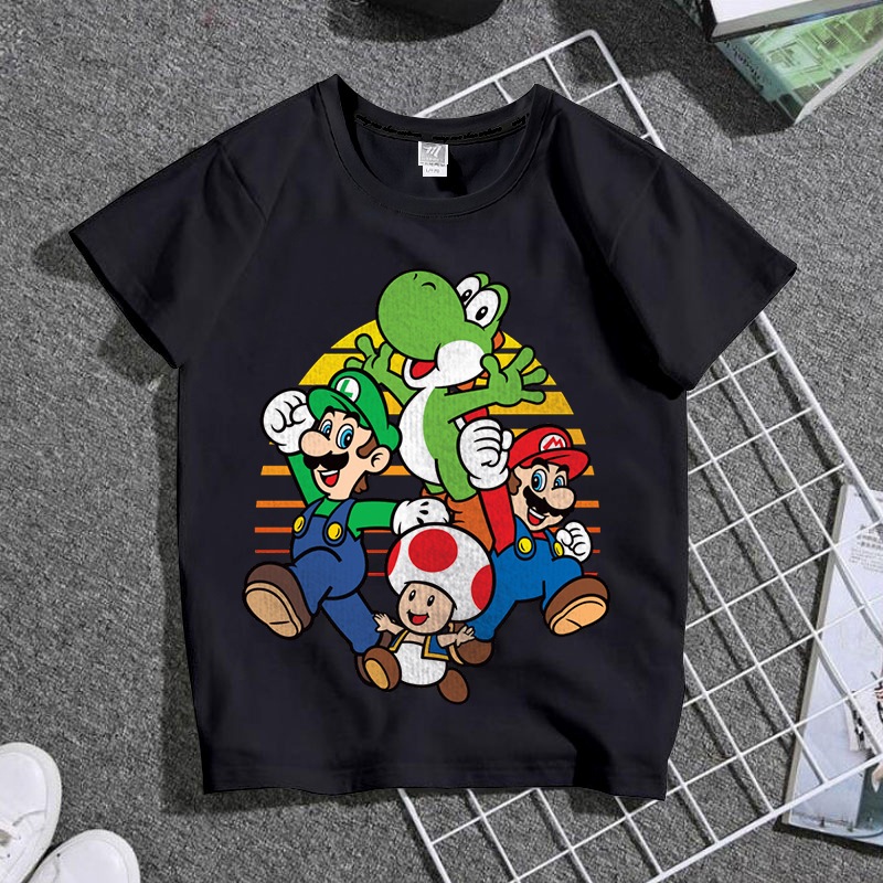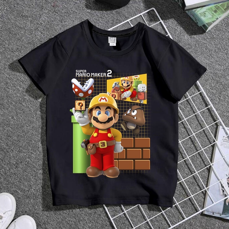マリオ Tシャツ 男女兼用 大人 子供 キッズ 子ども お揃い ペア 半袖シャツ 服 黒 ブラック シャツ カップル /メンズ/レディース/ 男の子/女の子/親子服