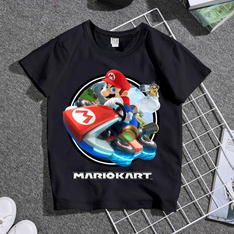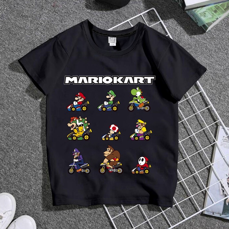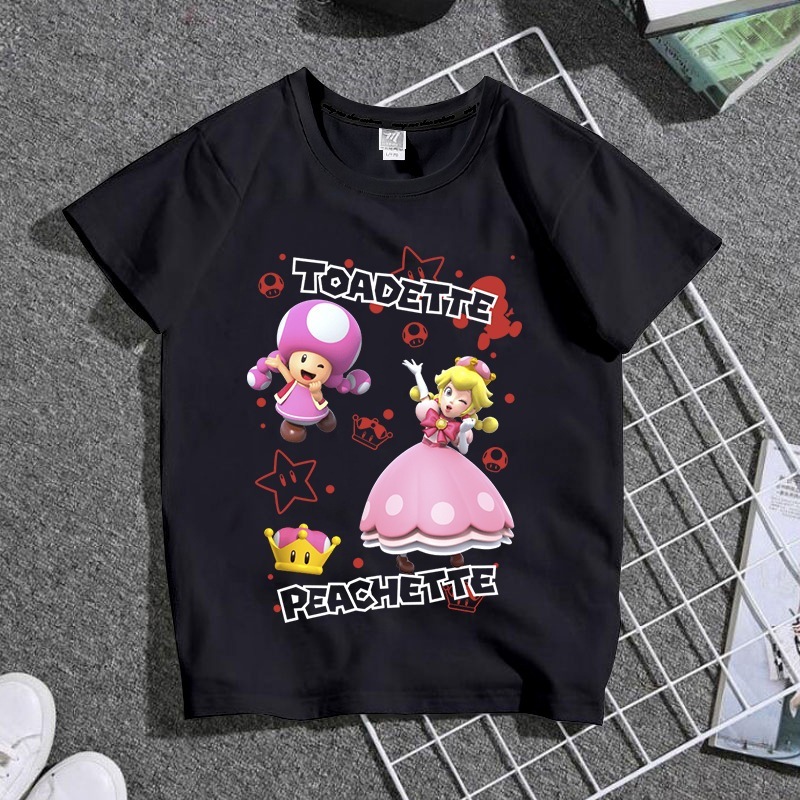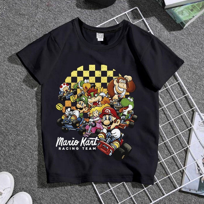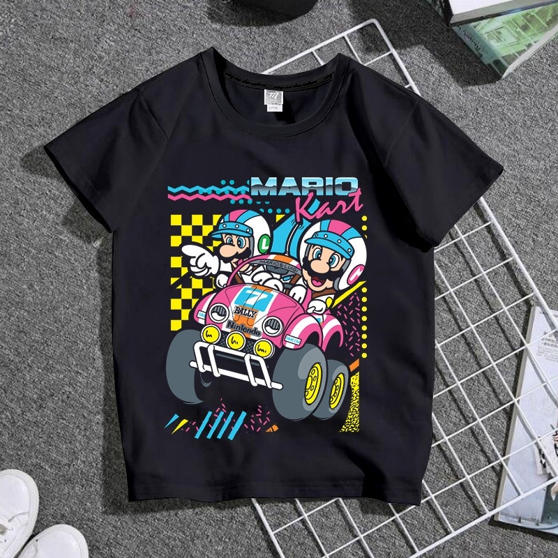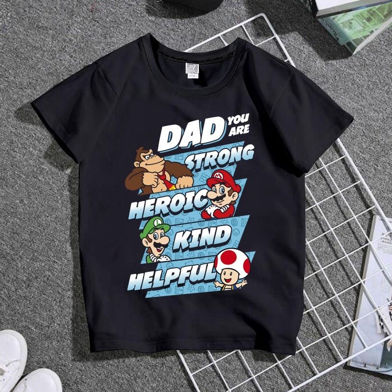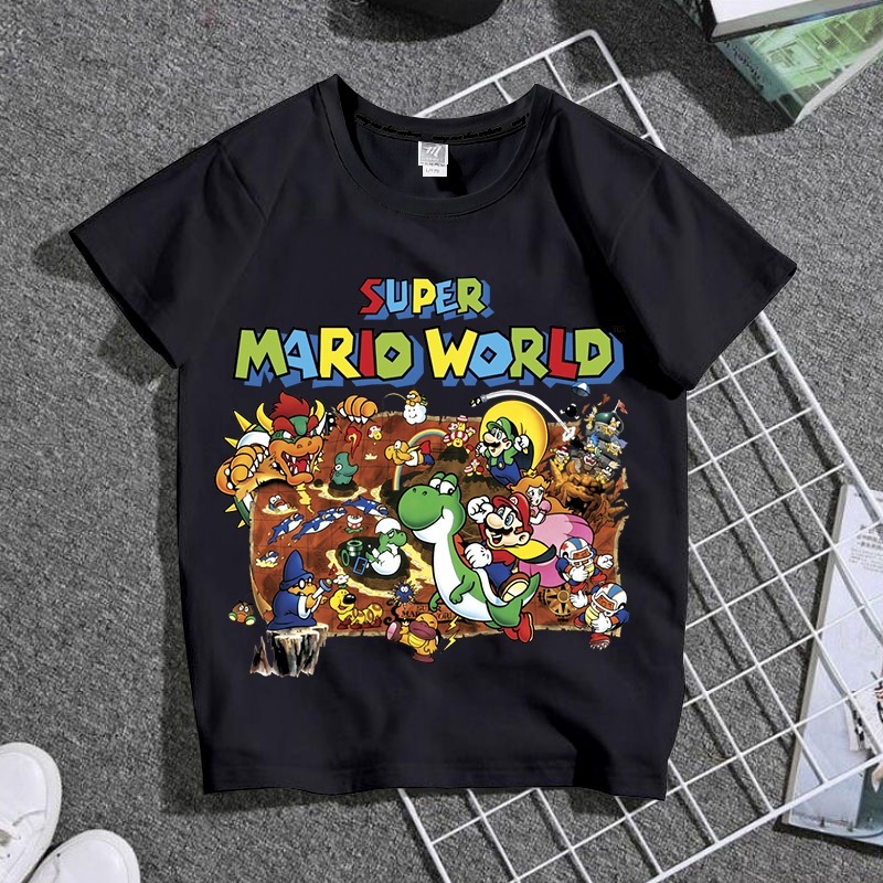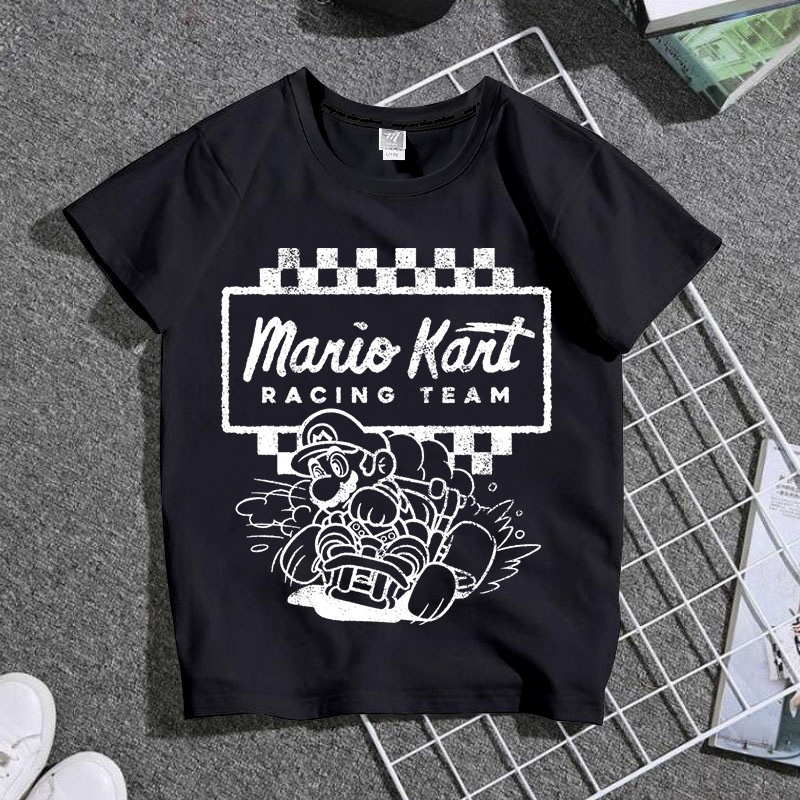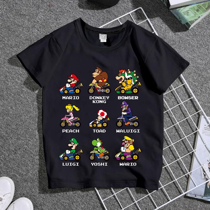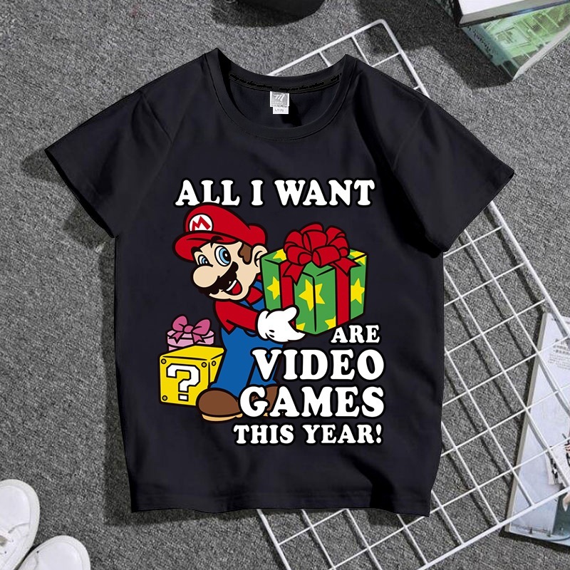 マリオ Tシャツ 男女兼用 大人 子供 キッズ 子ども お揃い ペア 半袖シャツ 服 黒 ブラック シャツ カップル /メンズ/レディース/ 男の子/女の子/親子服