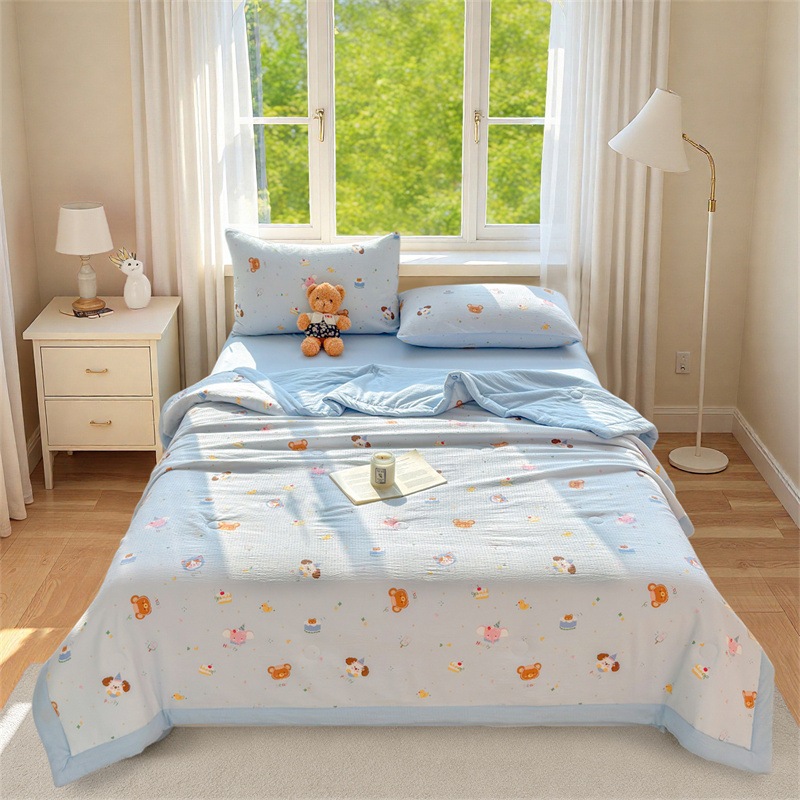 迅速出荷2026 二重紗 プリント 冷感布団 空調整布団 シングル