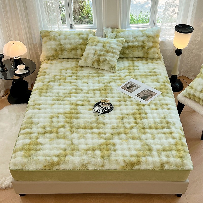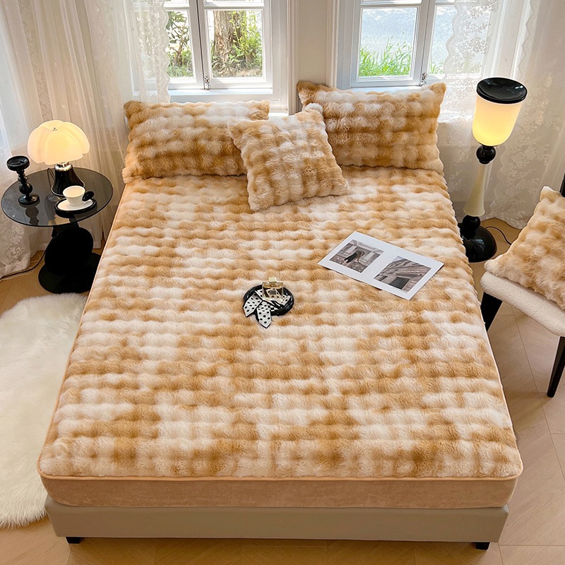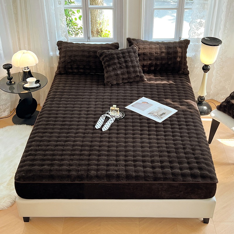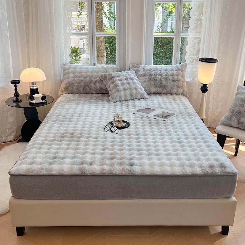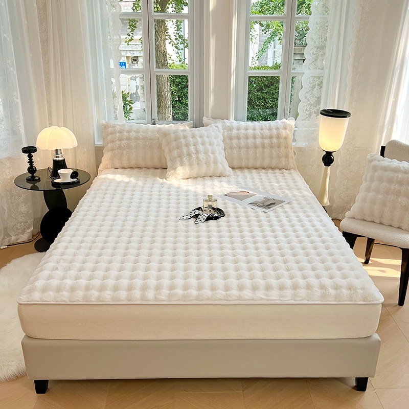 迅速出荷ラビットファー ボックスシーツ プロテクター マイクロファイバー マットレスパッド 防塵 抗菌 防ダニ ダブルベッド