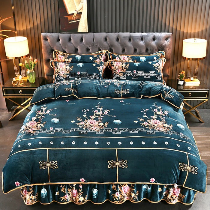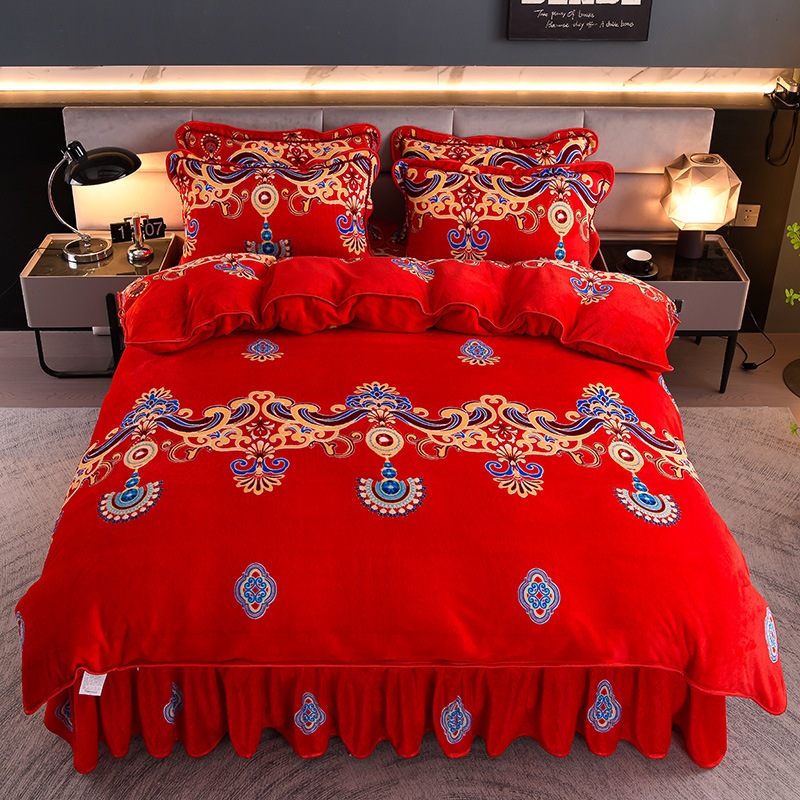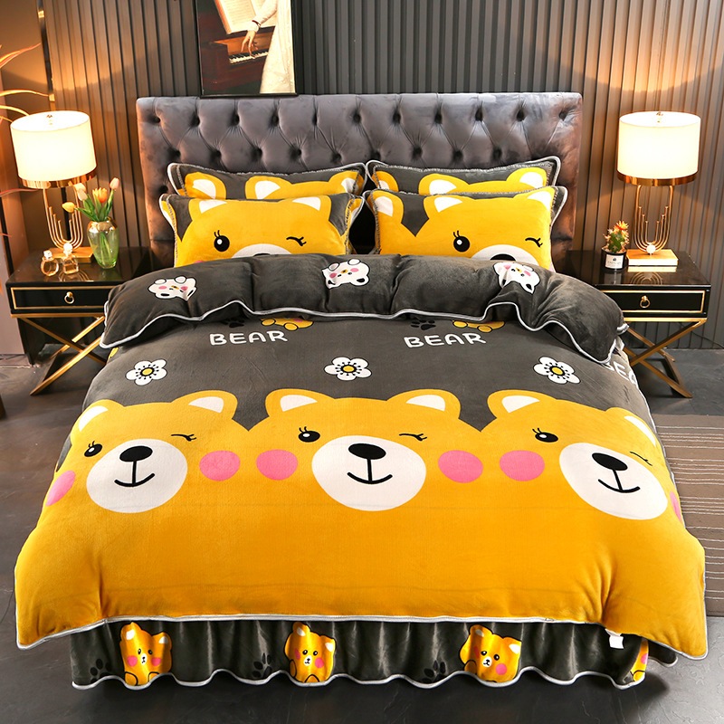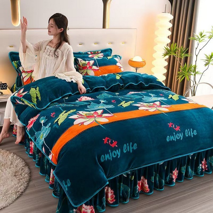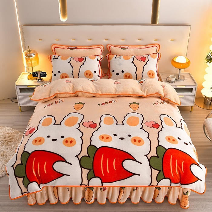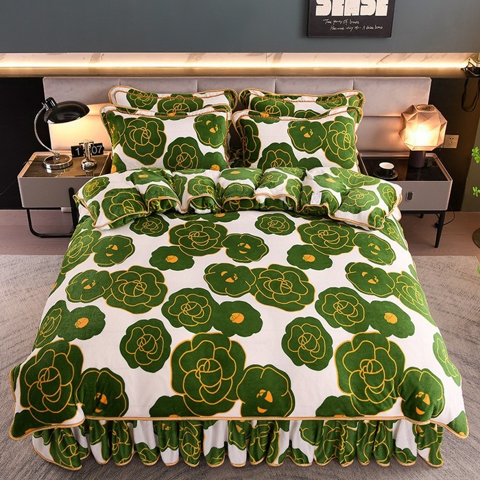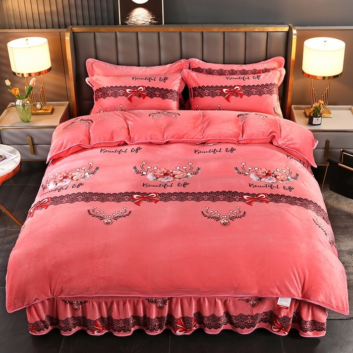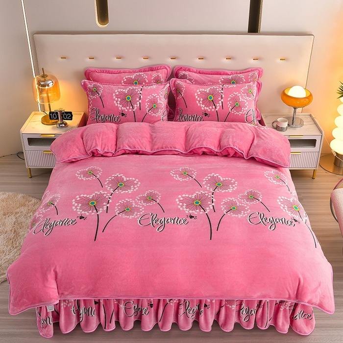 迅速出荷プリント ファー ボア ベッドスカート マイクロファイバー 4点セット 保温 スカート ラグジュアリー