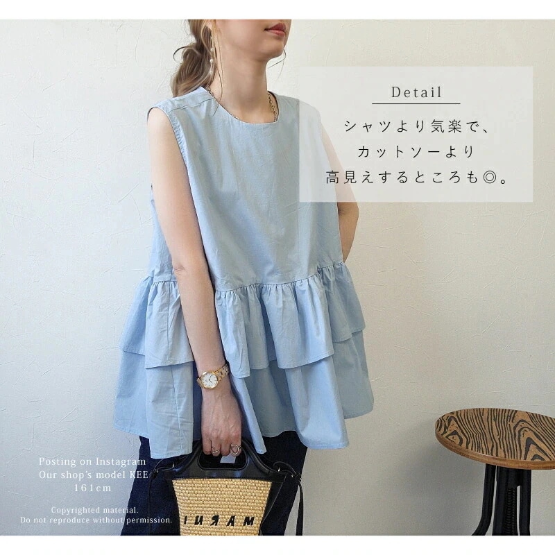 束腰コートレディース ノースリーブトップス 中長丈のトップス [レイヤードフリルトップスフレア型 フリルシャツ ブラックホワイトチェック 春夏ショートドレス体型カバー 妊婦]
