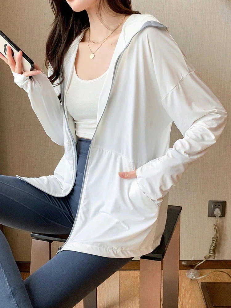 Uvパーカー UVカットパーカーアイスシルク薄手タイプパーカー通気性涼感ピュアカラー日焼け止め夏の新作UVカット自転車用日焼け止めコート7色完全防備UVカ