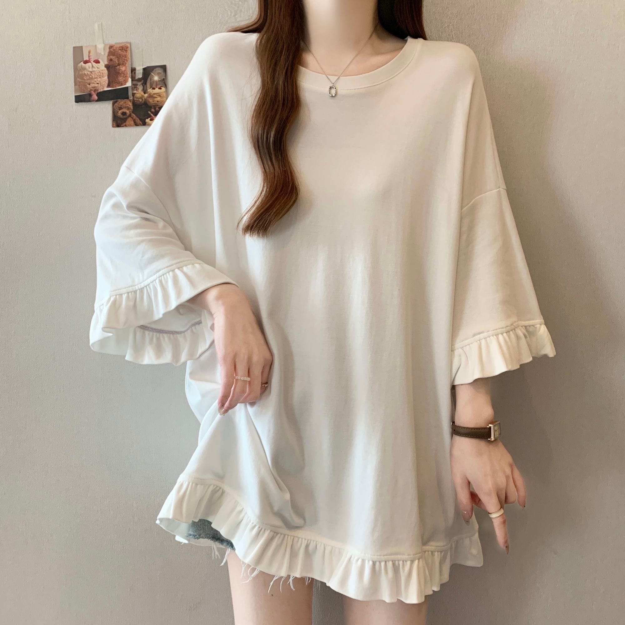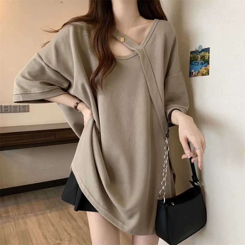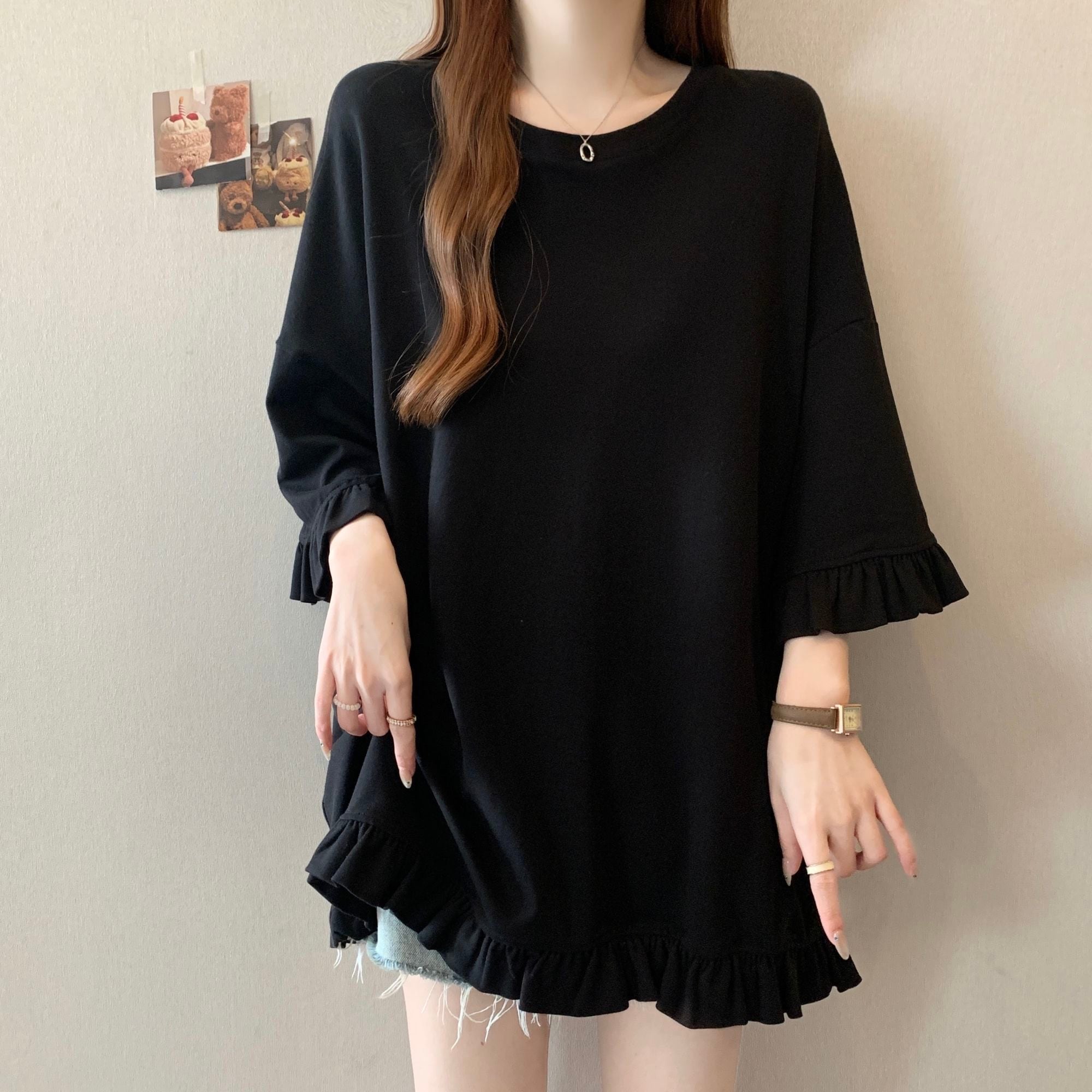 ゆったりタイプのロングTシャツ 春服 ミディアムサイズのビッグTシャツレディース半袖夏の新作ゆったり着やせビッグサイズレディーストップス