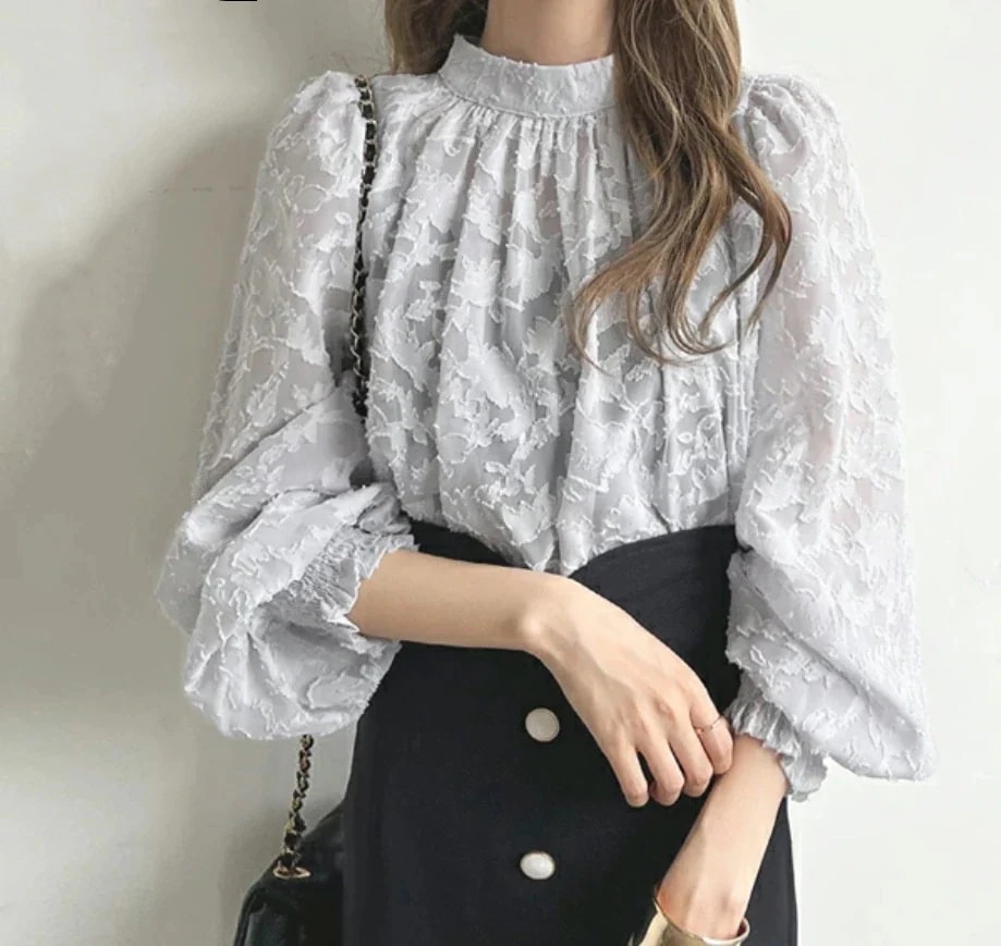 透かしレース レースシャツ 長袖 レディース 春夏 カットソー レース 刺繍 上品 薄手 透け感 高襟 立ち襟 パーティー 結婚式 ビジネス 通勤 ブラウス レースブラウス きれいめ 華奢見せ 大人