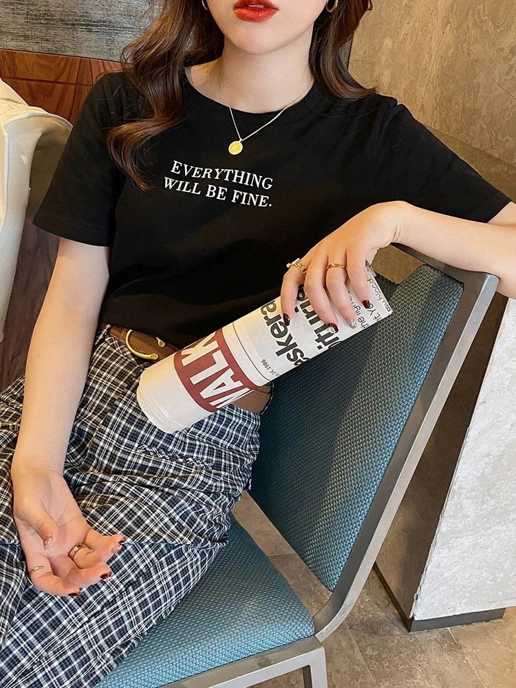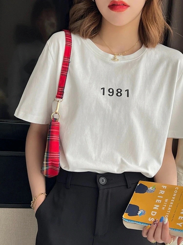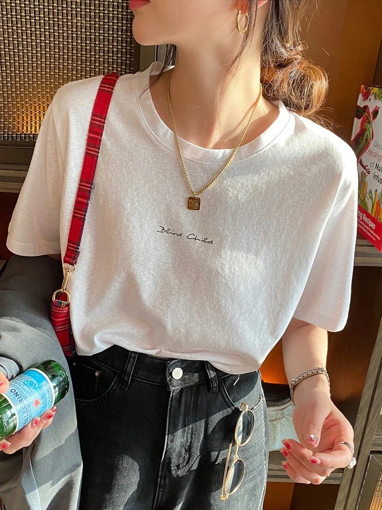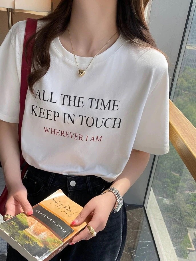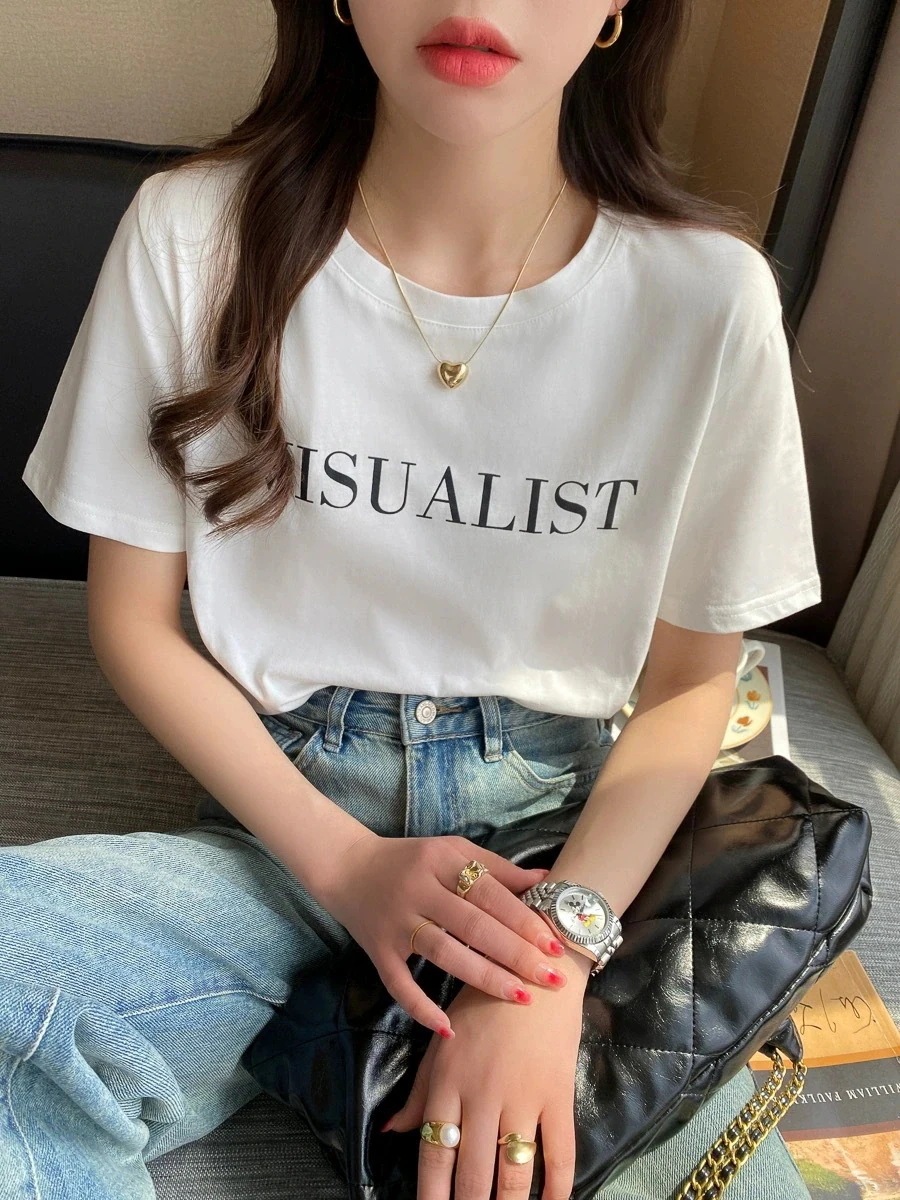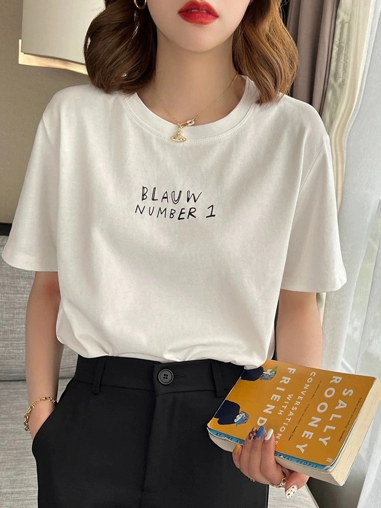 綿素材Tシャツ レディース 半袖 カジュアル おしゃれ ゆったり カットソー 大きいサイズ 薄手 プリント ロゴT ワンポイント ラウンドネック ストレッチ