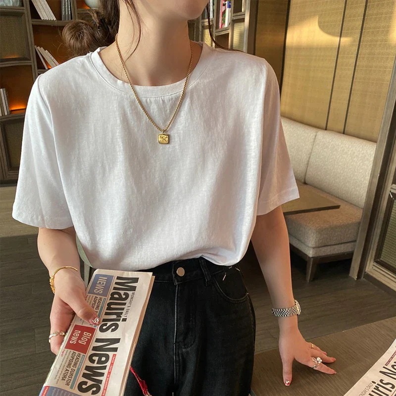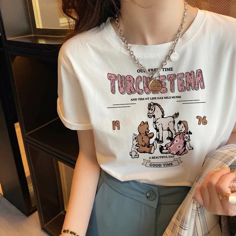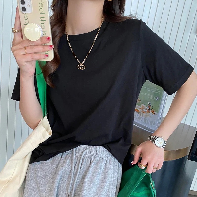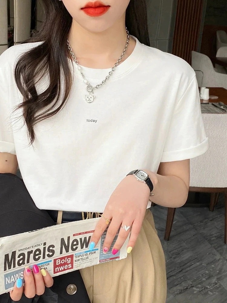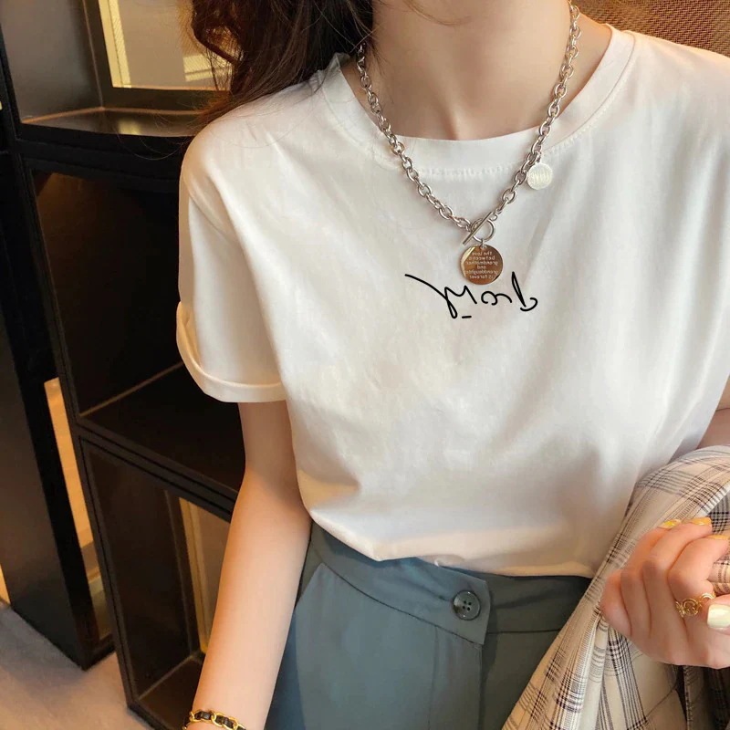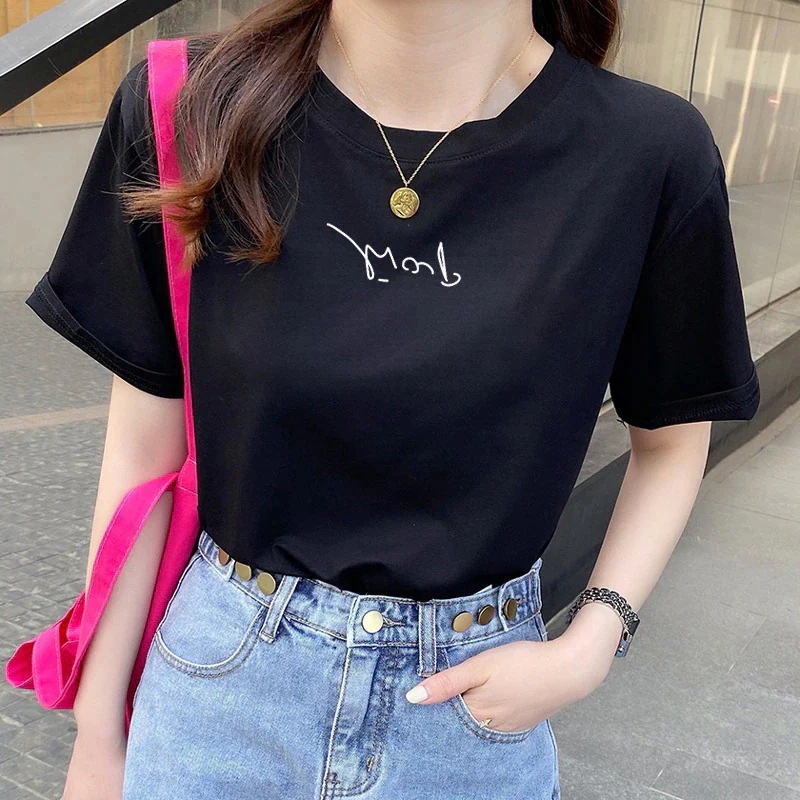 綿素材Tシャツ レディース 半袖 カジュアル おしゃれ ゆったり カットソー 大きいサイズ 薄手 プリント ロゴT ワンポイント ラウンドネック ストレッチ