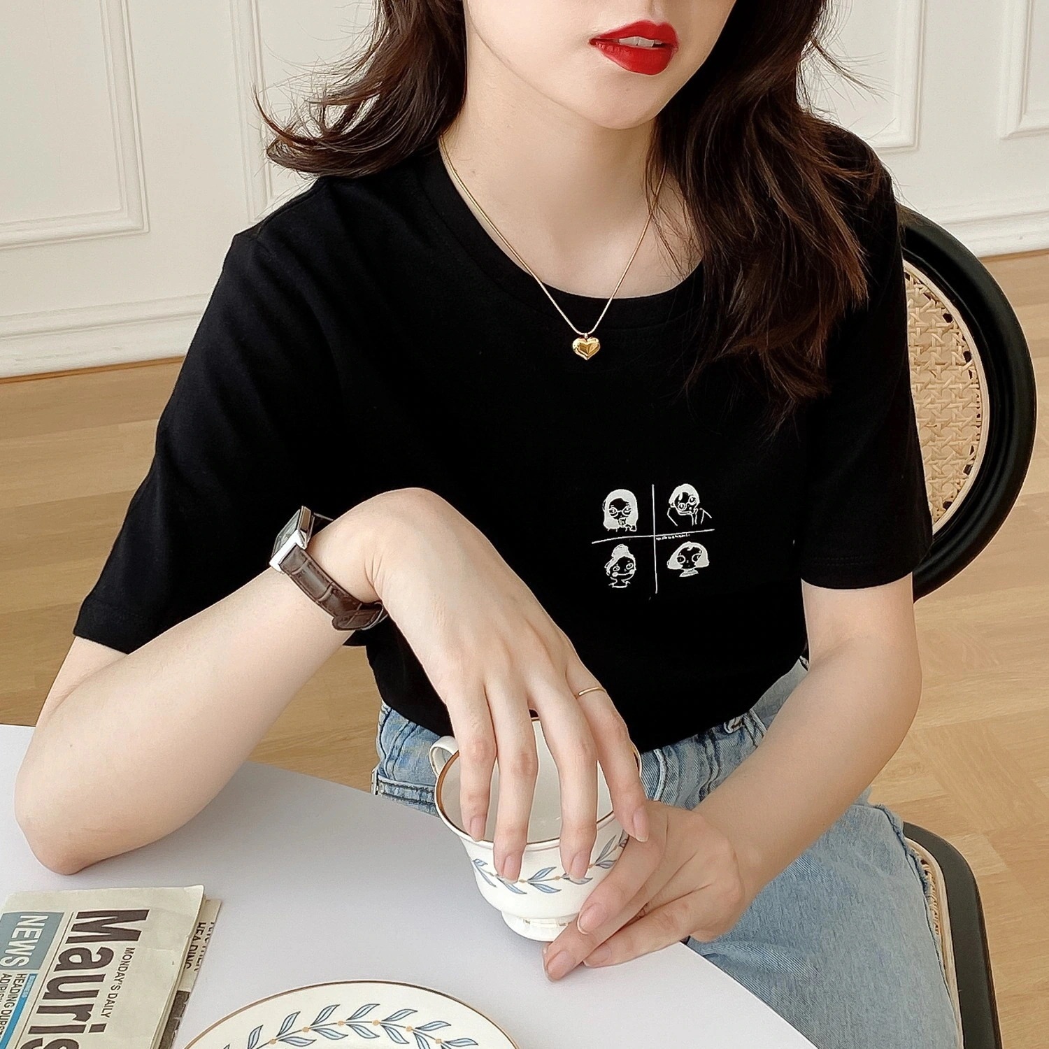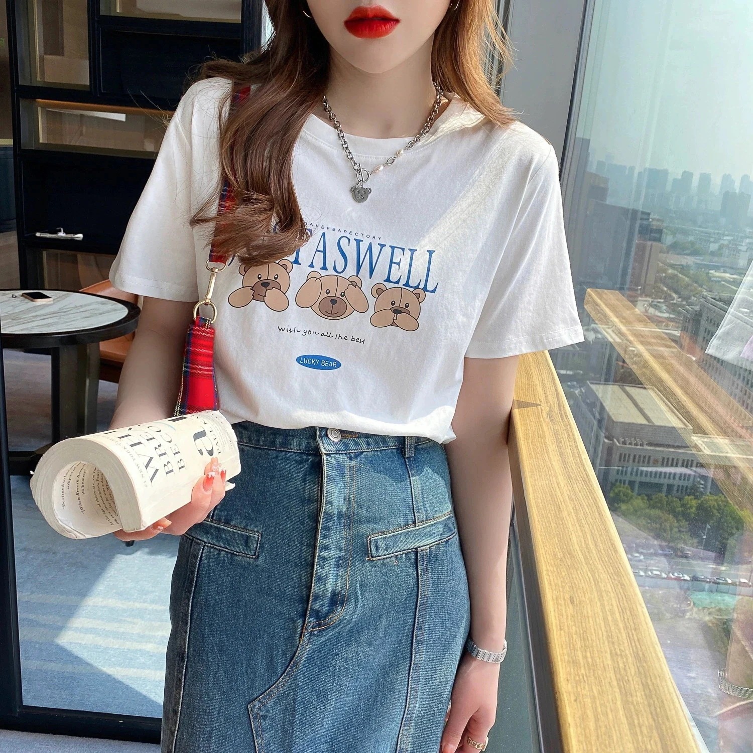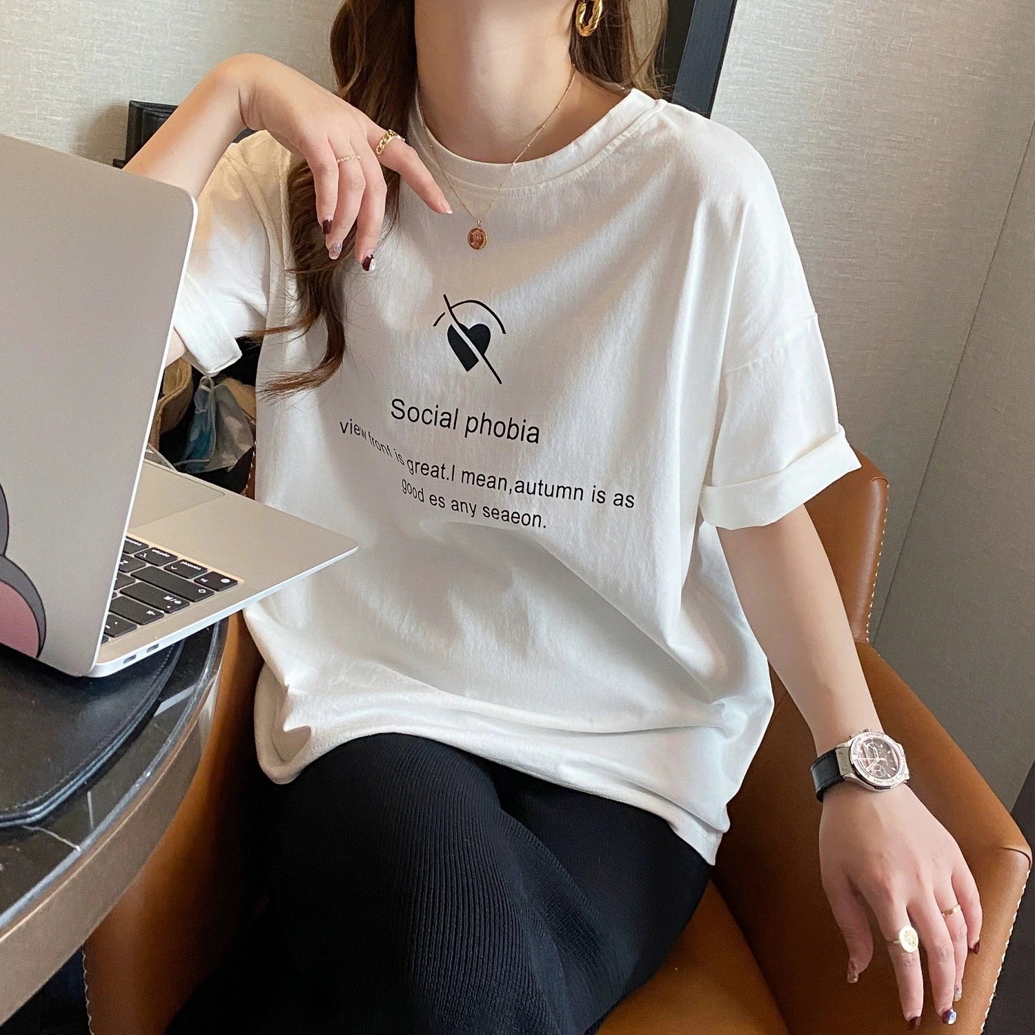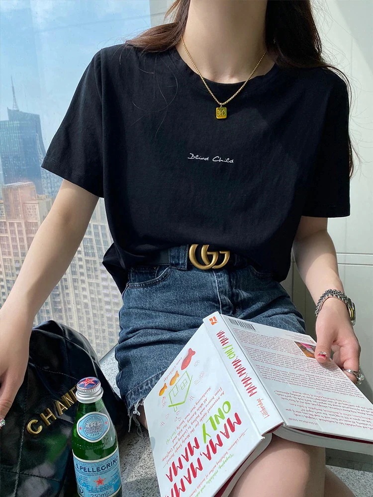 綿素材Tシャツ レディース 半袖 カジュアル おしゃれ ゆったり カットソー 大きいサイズ 薄手 プリント ロゴT ワンポイント ラウンドネック ストレッチ
