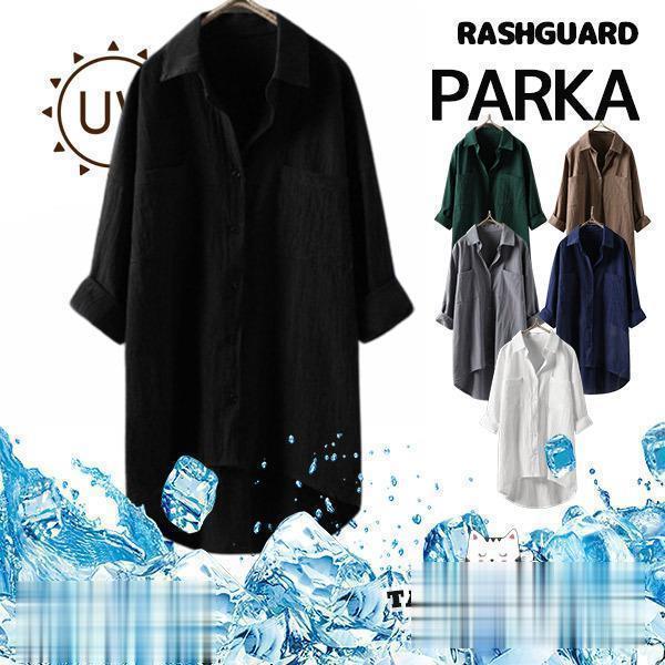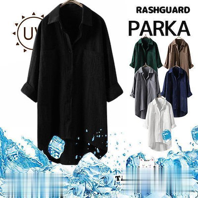 限定版ロングシャツ ラッシュパーカー シャツ UVカット 長袖 UVパーカー ブラウス 薄手 ロングパーカー 通気 ひんやり 紫外線対策 夏 日焼け防止