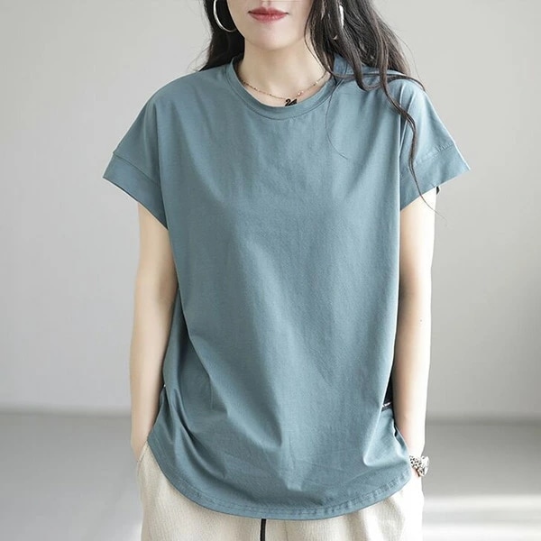 シャツ フレンチスリーブ ブラウス レディース 半袖 シャツブラウス Uネック チュニック ミドル丈 ワイシャツ 透け感 トップス 体型カバー Tシャツ 大きいサイズ カッターシャツ 前後差 重ね着
