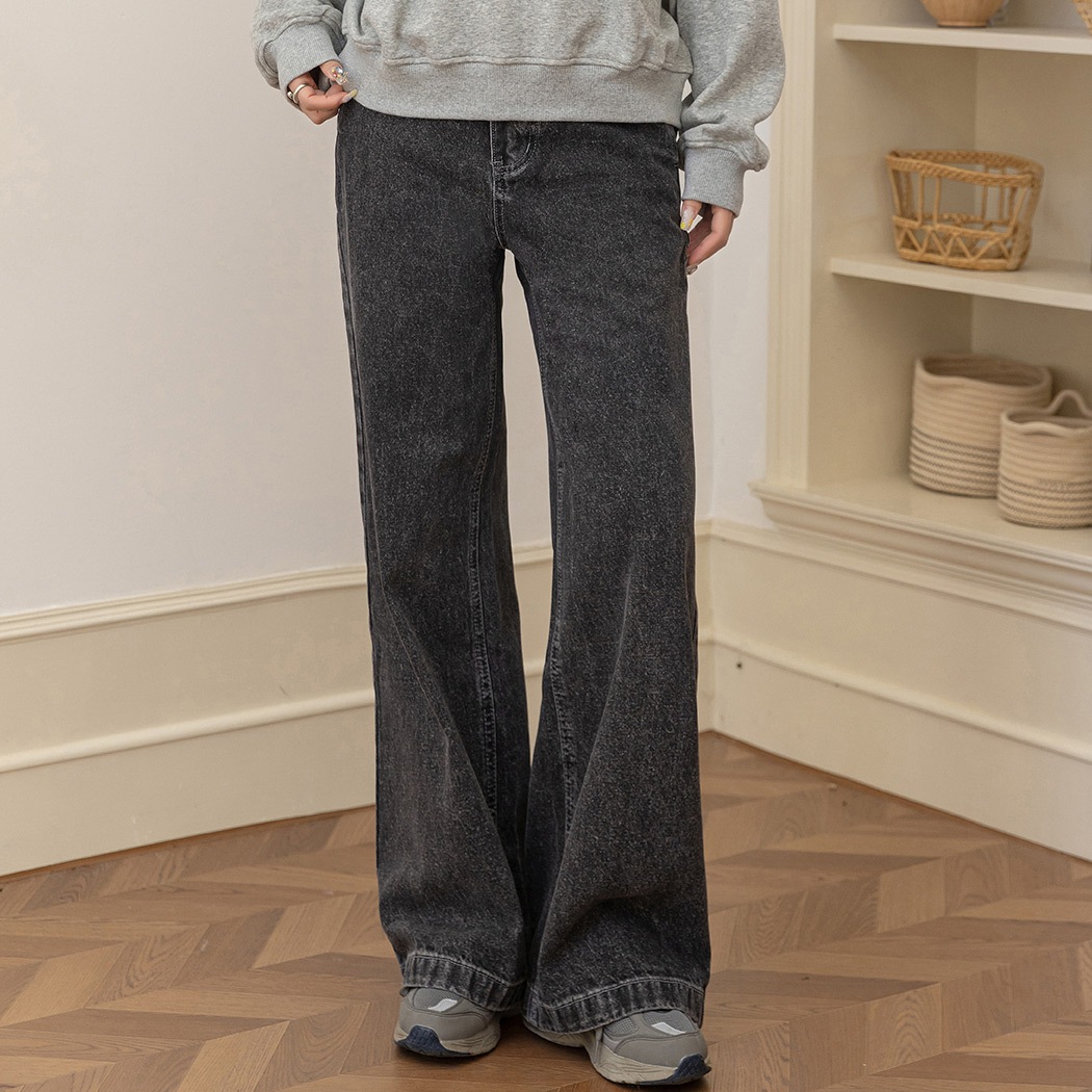 『最安値販売』デニム パンツ ワイド ストレート レディース ボトムス ジーンズ ワイドストレートパンツ きれいめ 中厚手 黒 春 秋 冬 ロングシーズン