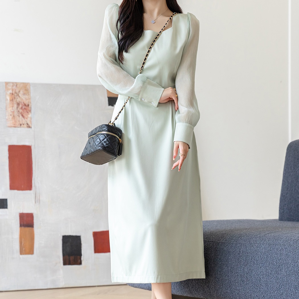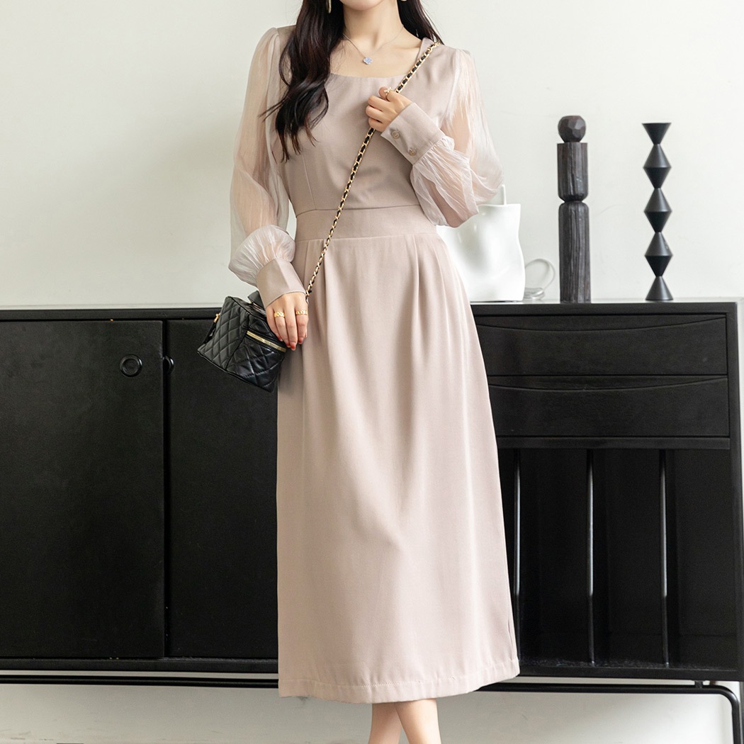 『最安値販売』ワンピース 春 秋 きれいめ レディース ロング 長袖 おしゃれ エレガント フェミニン きれいめ 無地