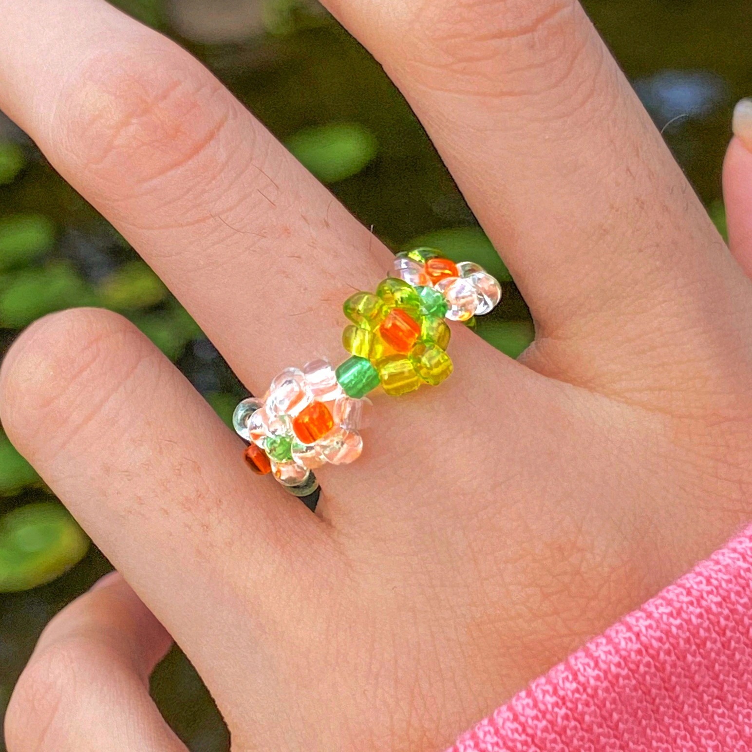 フリーサイズ かわいい アジャスタブル レディース トレンド 指輪 リング ビーズ 韓国 り カラー リング 環 おしゃれ シンプル