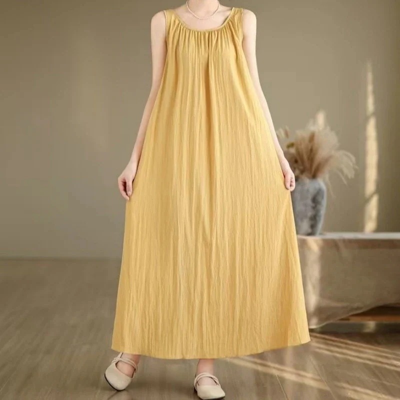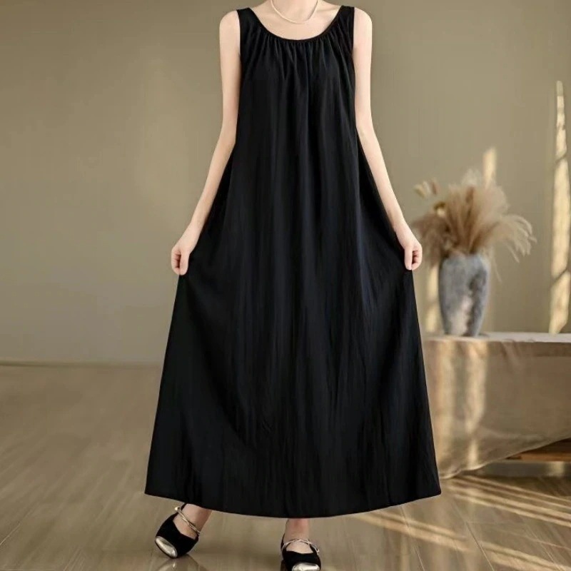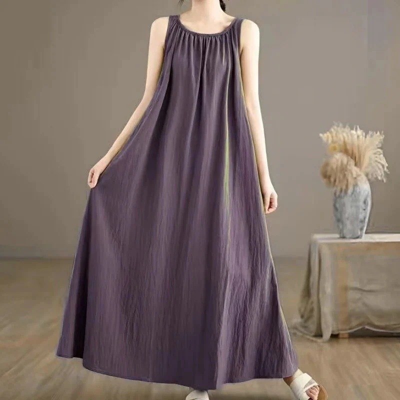 リネン夏ワンピースノースリーブ ワンピース 夏 ロングワンピース マキシワンピース レディース 夏 ゆったり 着痩せ カジュアル レディースファッション ワンピース