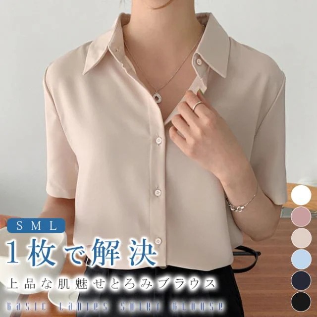 ブラウス オフィス 半袖 レディース とろみ シャツブラウス 白 シャツ 夏 シワになりにくい 襟付き 開襟 スキッパーシャツ ワイシャツ ロングスカート
