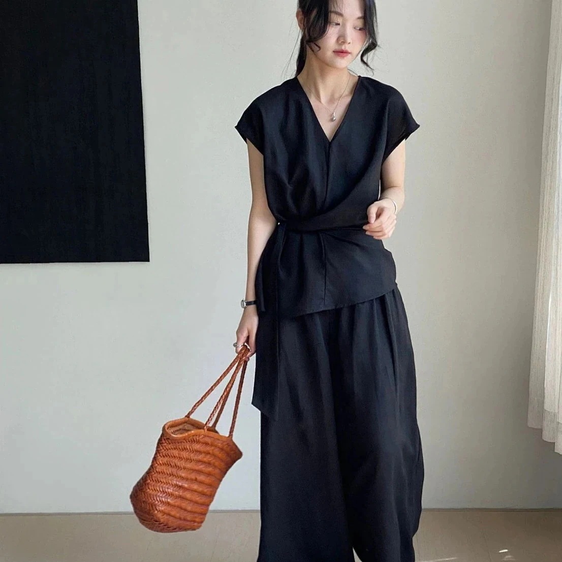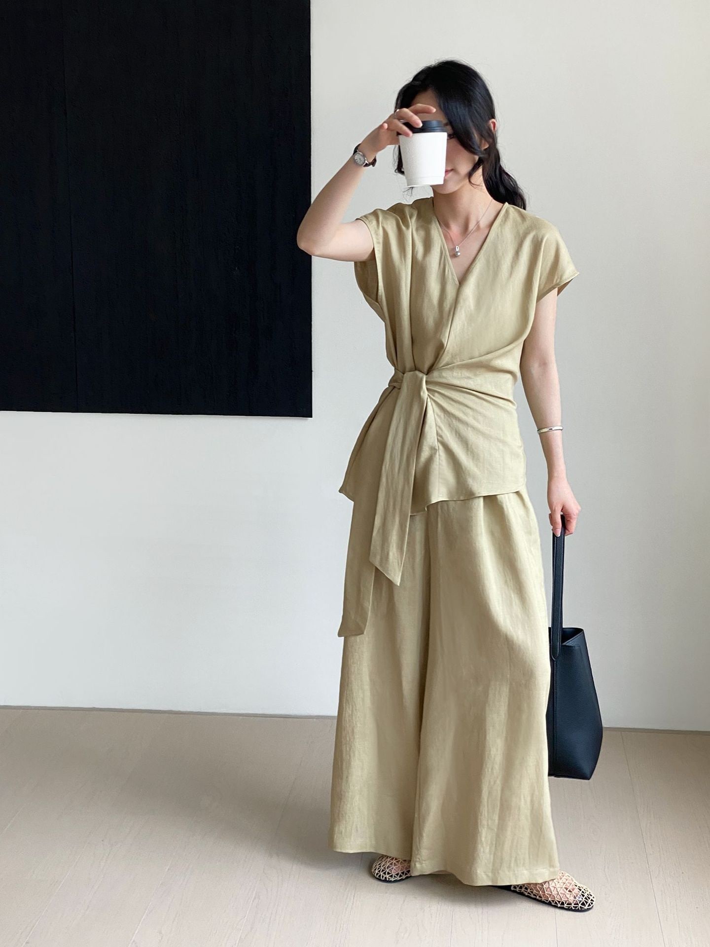 セットアップレディース夏上下セット ワイドパンツ ブラウス ノースリーブカジュアル無地きれいめロングパンツ体型カバー着痩せ セットアップ セットアップ
