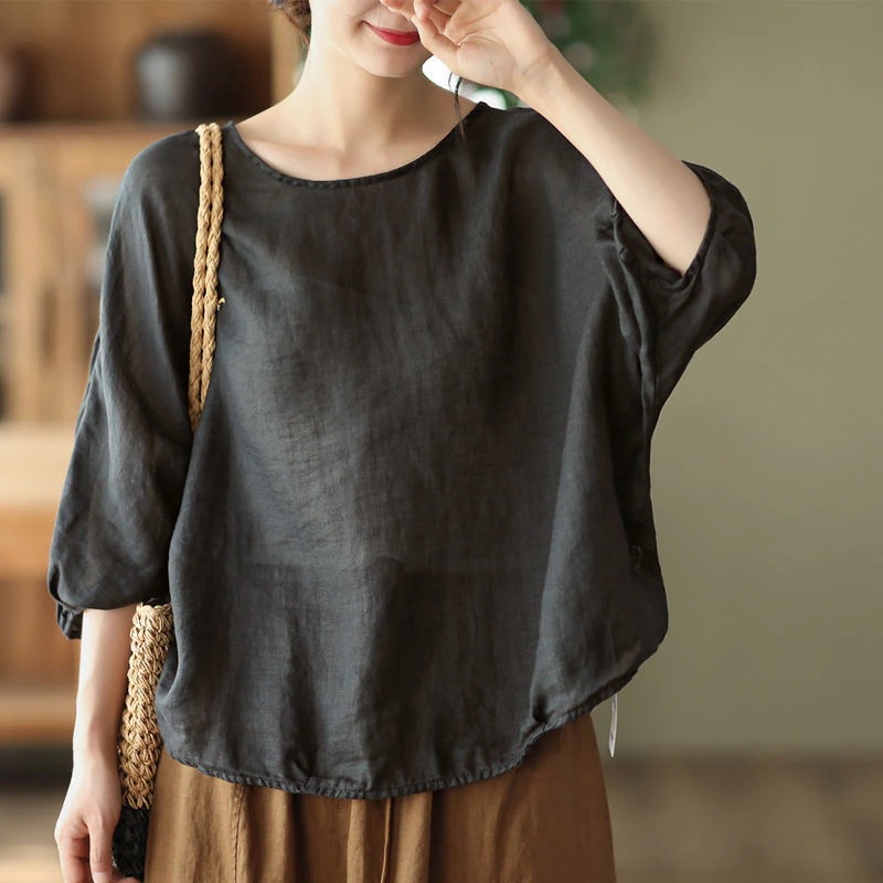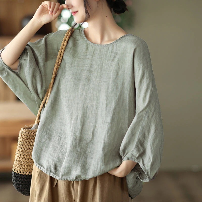 理想のこなれ 綿麻 ブラウス レディース 薄手 ゆったり バットスリーブトップス 大きいサイズ 夏 tシャツ 半袖 レディース uvカット Tシャツ 着痩せ 百掛け