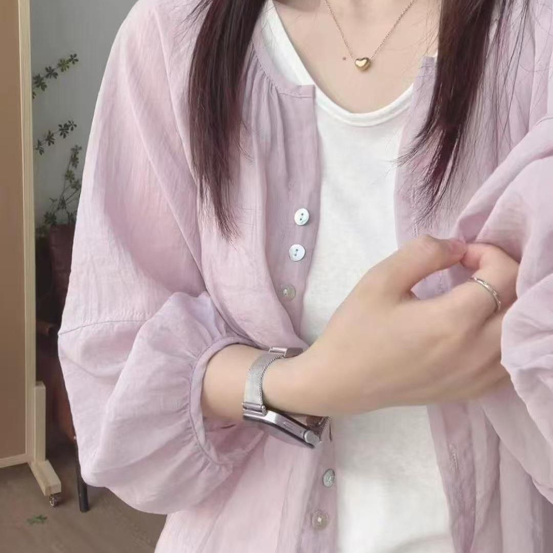 UV対策 UV ゆったり 通気性カーディガン ブラウス 韓国ファッション シアーシャツ バルーンスリーブ 春アウター UV カット 日焼け止め 薄手 ノーカラー 羽織り レディー