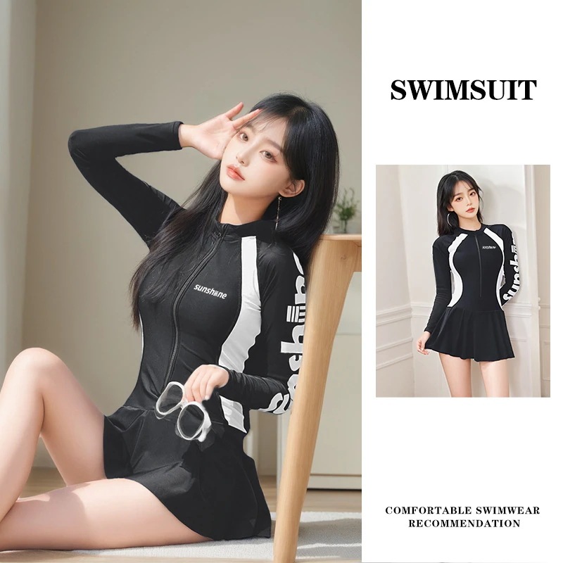 レディース つなぎ 水着 ワンピース風 スカート付き シンプル ブラック 体型カバー 温泉 スイムウェア スポーツ水着 ゆったり 夏用 ワンピース水着