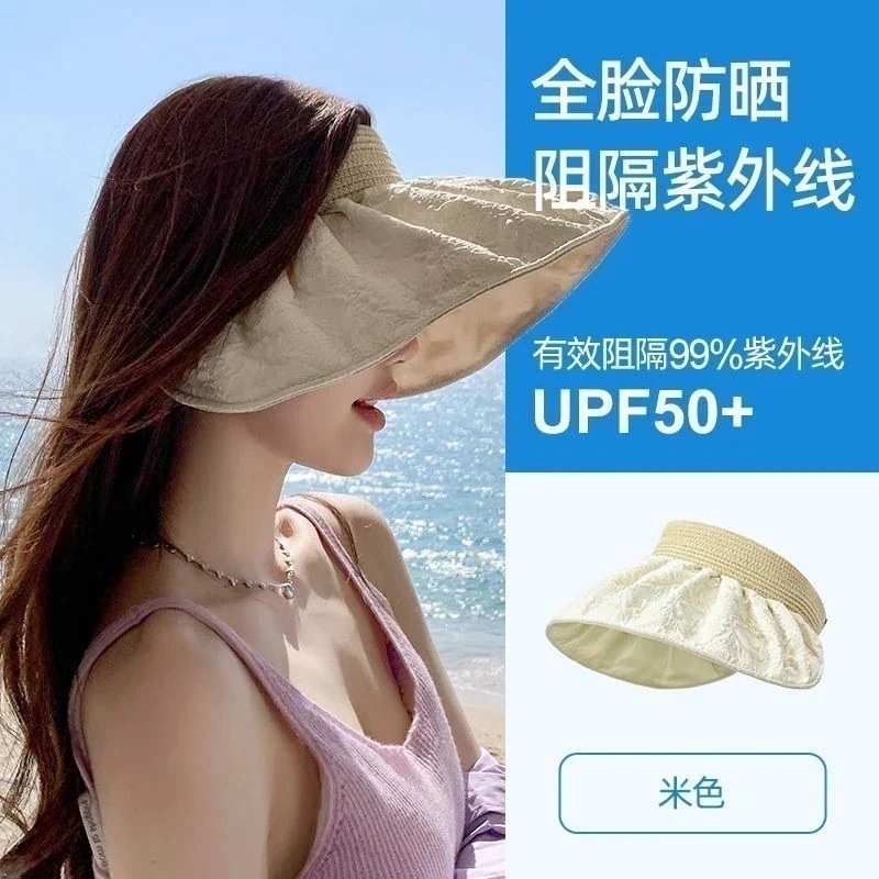 春キャップ/紫外線対策 日焼け止め帽子女性夏 新しい大きなつば抗紫外線太陽帽子中空トップ太陽帽子シェル帽子