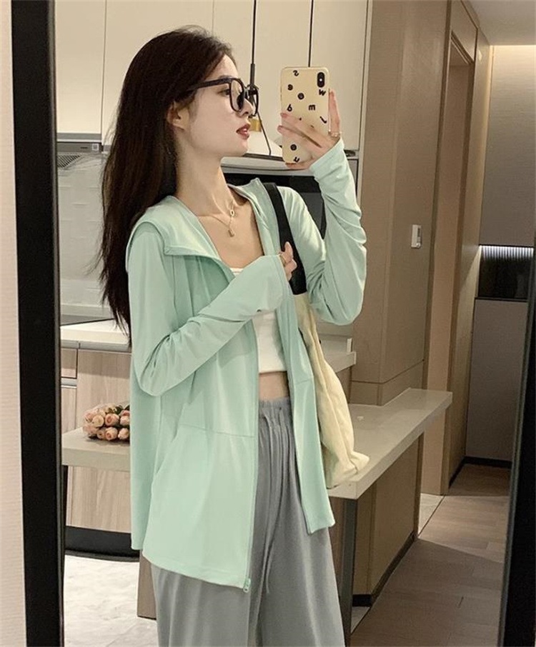 冷感素材UVカットパーカー 8色 レディースフード付き 夏向け防紫外線アウター