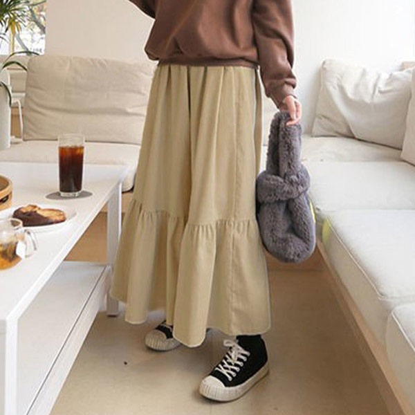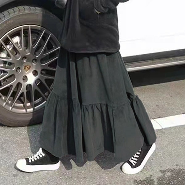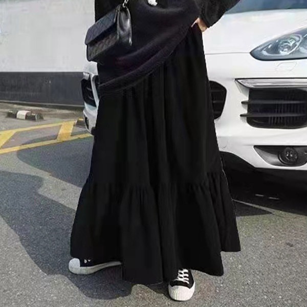 『最安値販売』レディース ロング 秋冬 黒 シンプル 無地 ゆったり ティアードスカート 裾 切り替え ギャザー マキシ きれいめ
