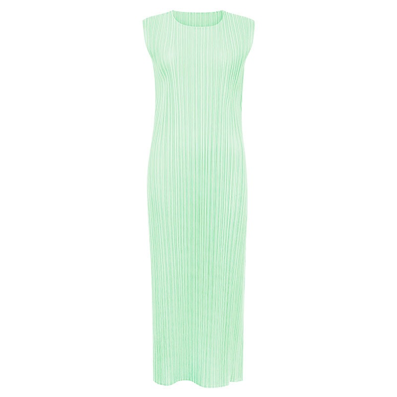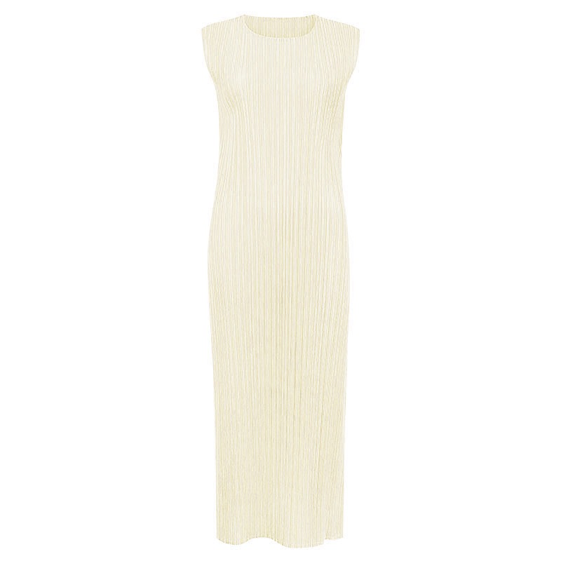 シンプル 2026 夏新作 日系 エレガント 丸首 ノースリーブ ワンピース レディース ミディアム丈 ベストスカート