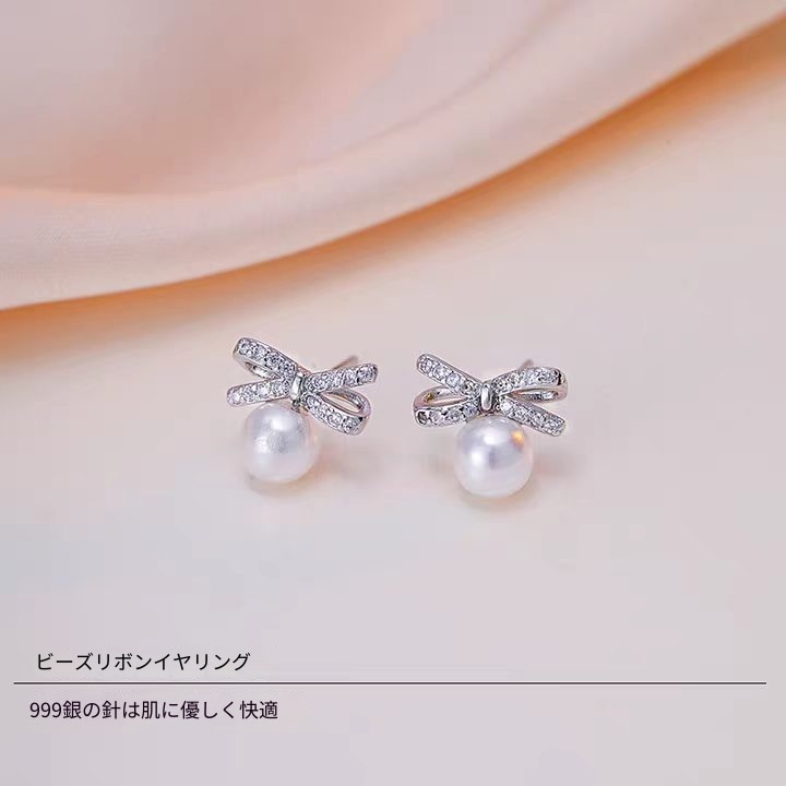 Z小姐 999銀製ピアス 蝶結びビーズ 小規模ブランドの女性用新作イヤリング