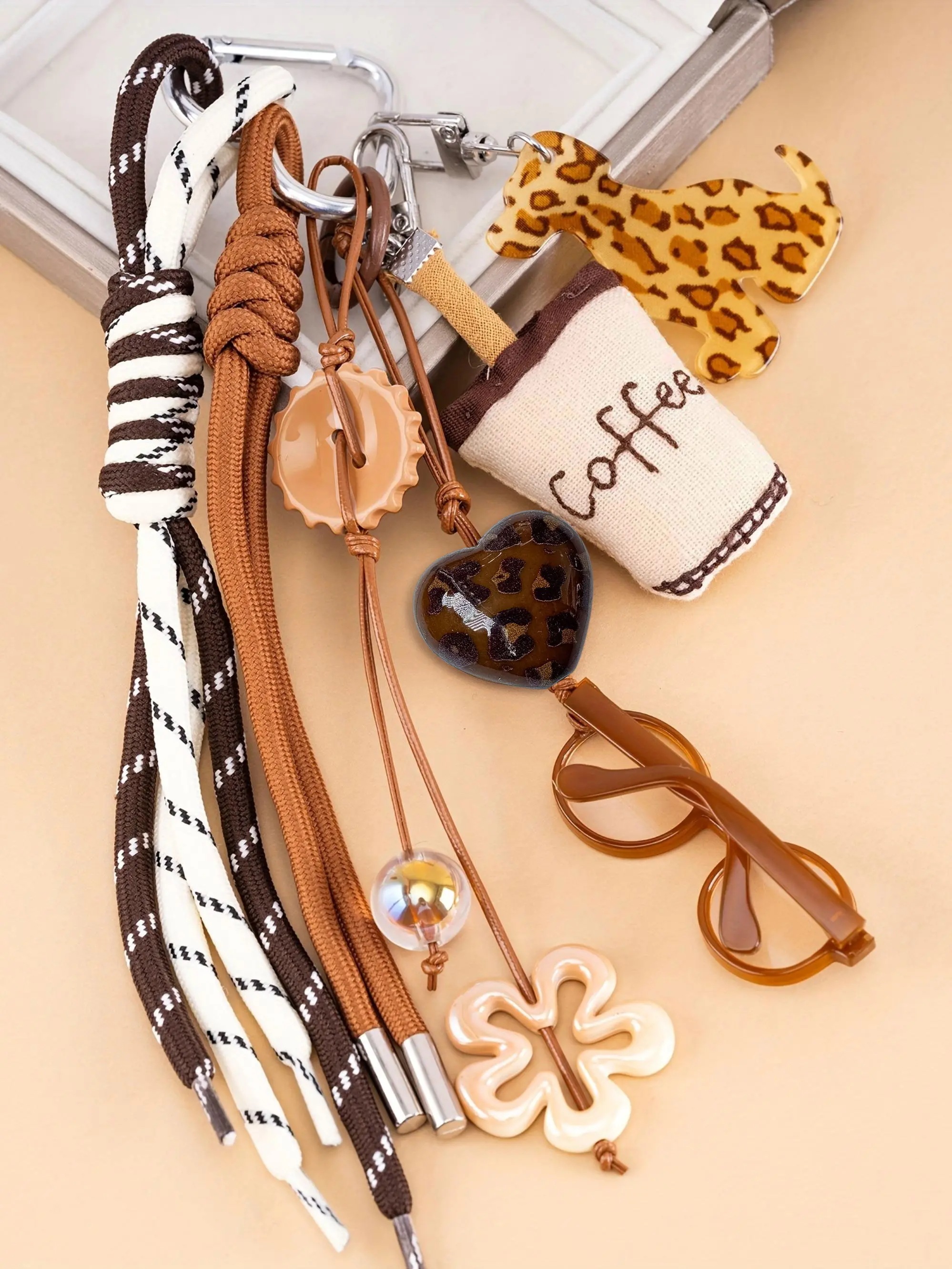 | 材料/素材 | [独特なデザイン]:コーヒーカップと遊び心のあるプリント(レオパード柄や花)の魅力的な組み合わせ。 [高品質素材]:高級編みロープを使用し、耐久性を確保するとともに、日常使いにふさわしい洗練された外観を実現します。 [多用途性]:オープンループクラスプを搭載しており、キーやバッグ、ギフトに簡単に取り付けられ、実用性を高めます。 ユニセックスの魅力:誰にでも適した装飾キーホルダーで、あらゆるシーンに適した心遣いのあるギフトです。 季節を問わず使えるアクセサリー:すべての季節にデザインされたこのキーホルダーは、一年中どんなコーデにも遊び心を添えます。 | ||