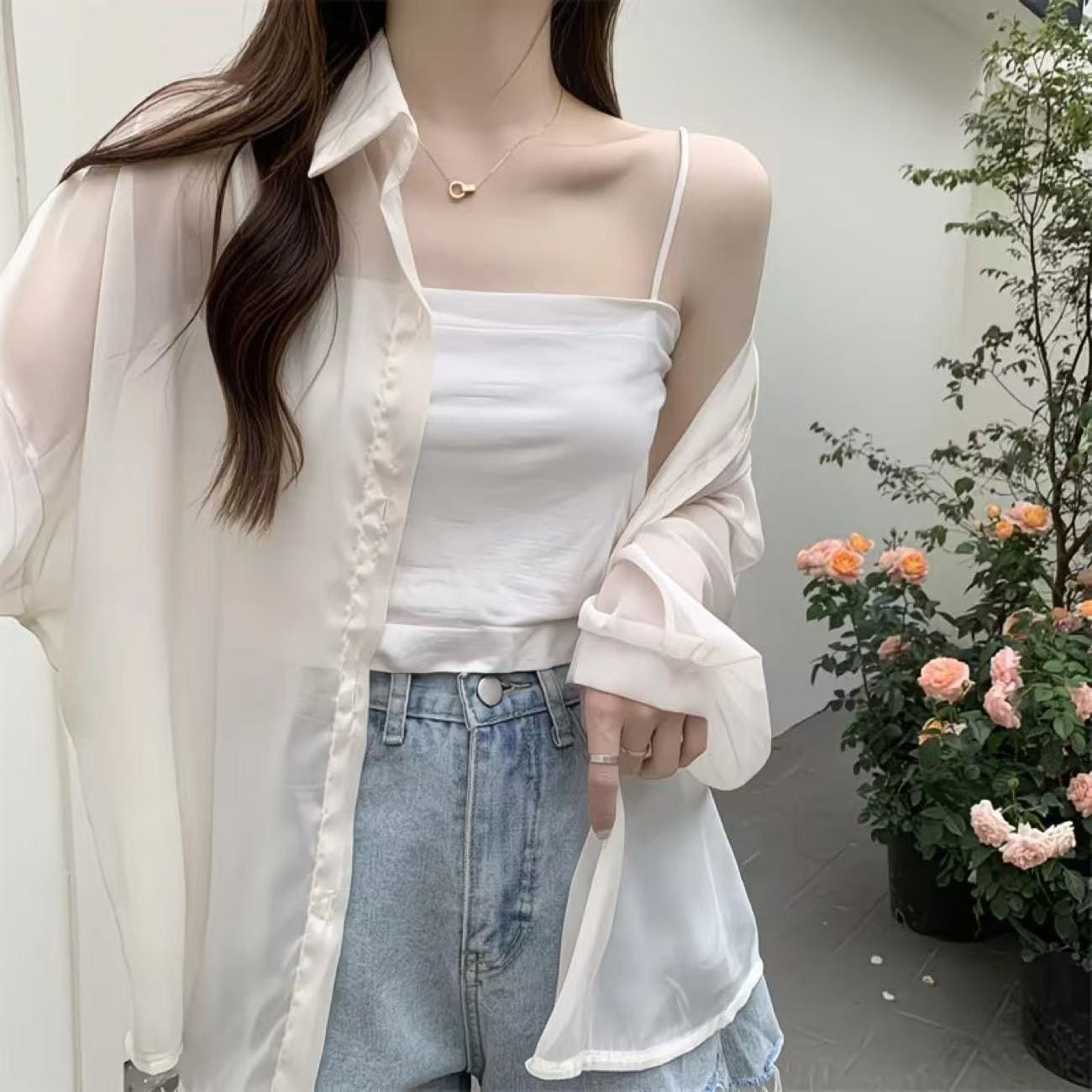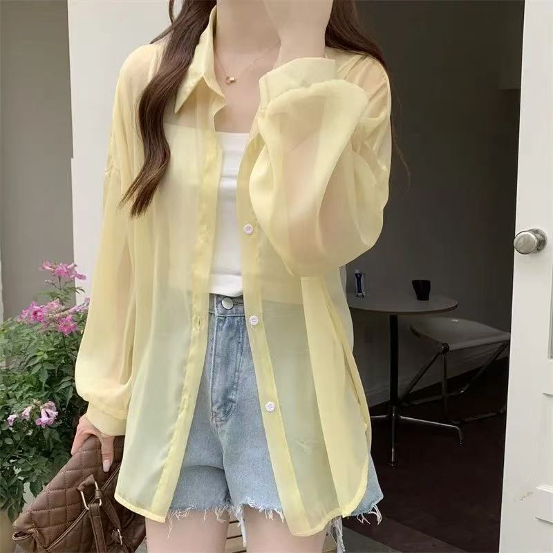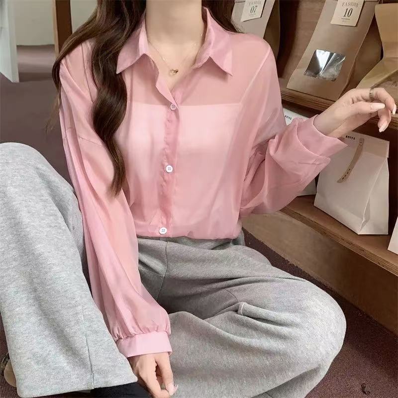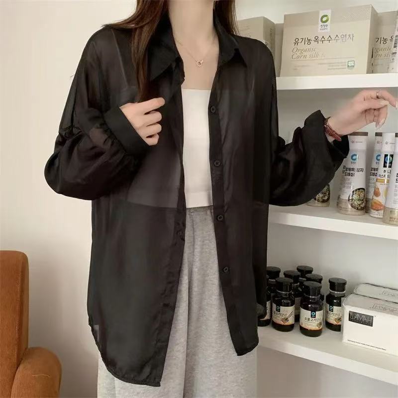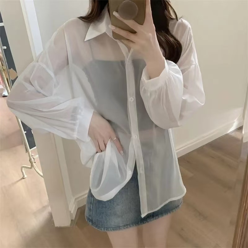 シアーシャツ ブラウス 韓国ファッション ゆったり 着やせ UVカット シャツ レディース トップス 長袖 日焼け防止 大きいサイズ アイスシルク カーディガン 冷房対策