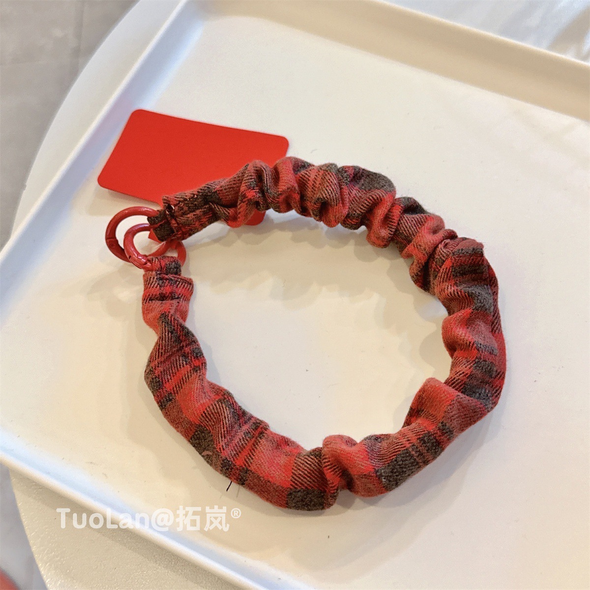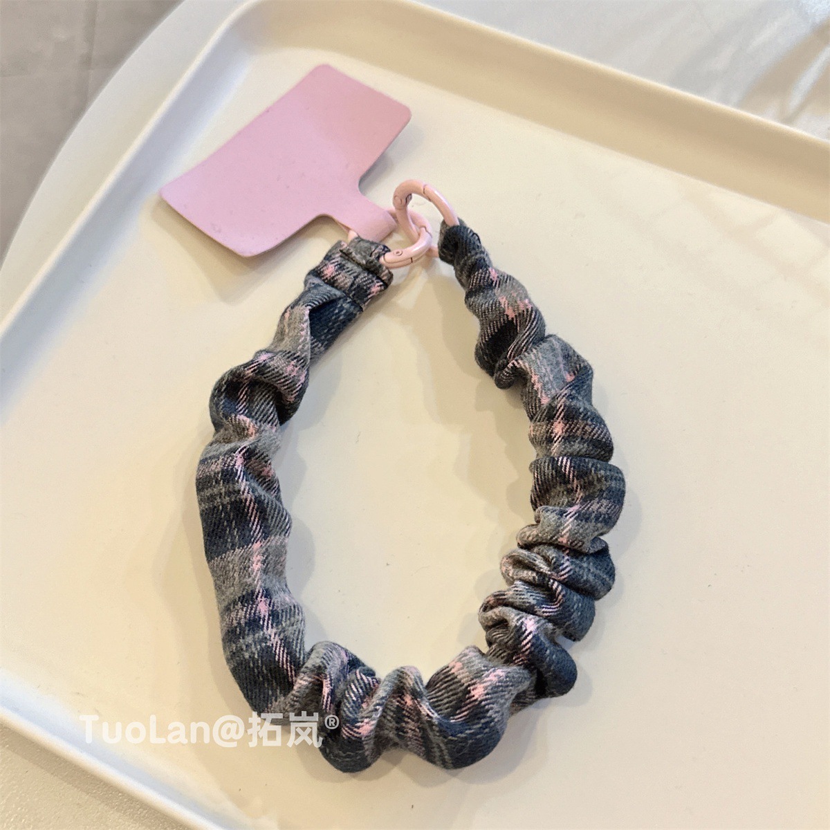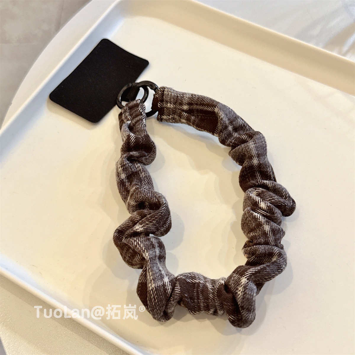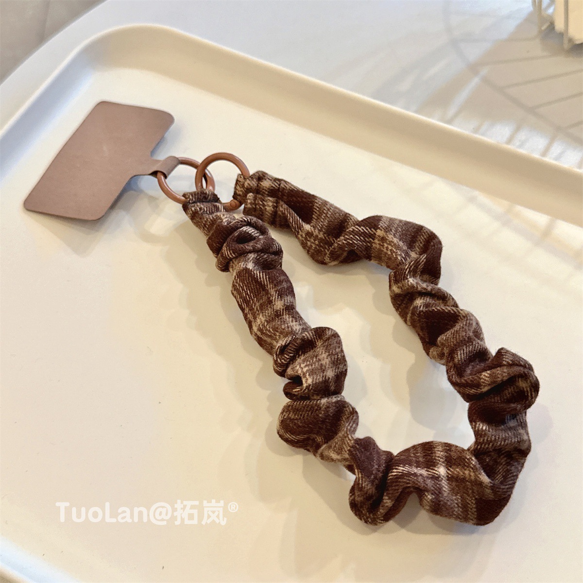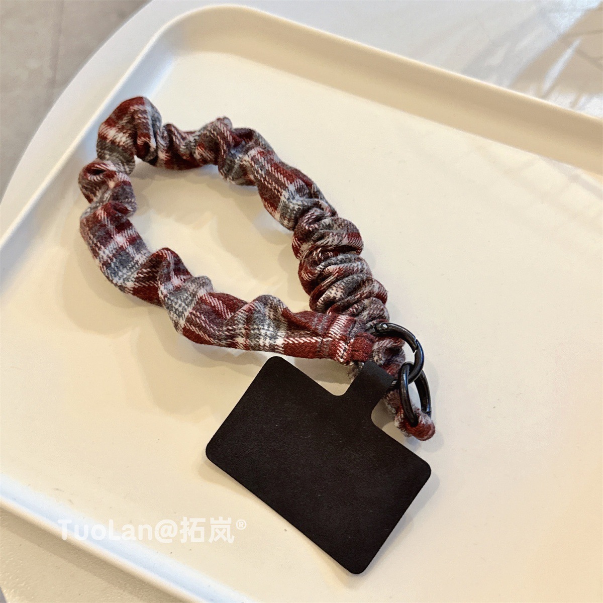 レトロ 高級感 起毛 布 ギャザー チェック ツートン パッチワーク スマホケース ストラップ ショート 手 ストラップ