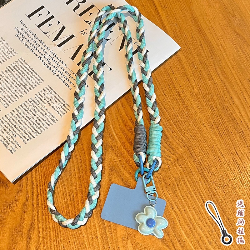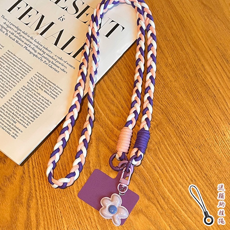 キャンディ 五弁 花 スマホ ストラップ 斜め掛け ロング ツートン ハンドメイド 編み込み 頑丈 耐 D