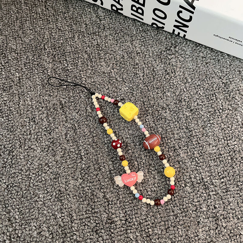 高級 ins 少女系 手 ストラップ スマホケース ストラップ カメラ ストラップ チーズ キューブ ビーズ キーホルダー チャーム