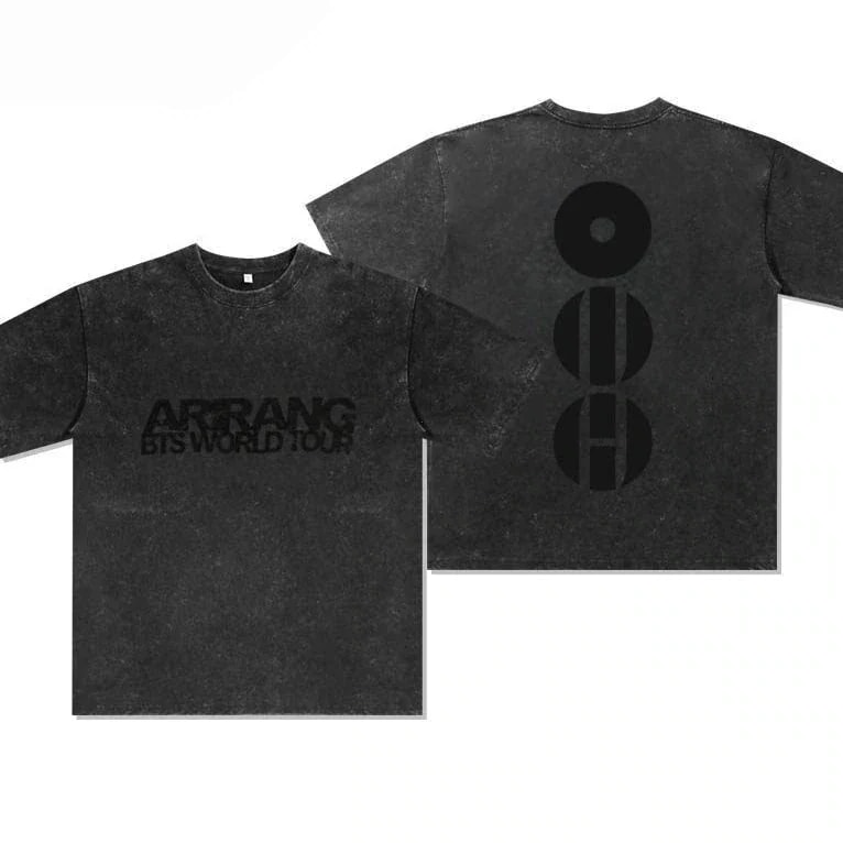 送料無料 2026年カムバック 『ARIRANG』 日本ポップアップ同款デザイン ウォッシュ コットン100% 半袖Tシャツ ヴィンテージ風プリント ゆったりシルエット 男女兼用
