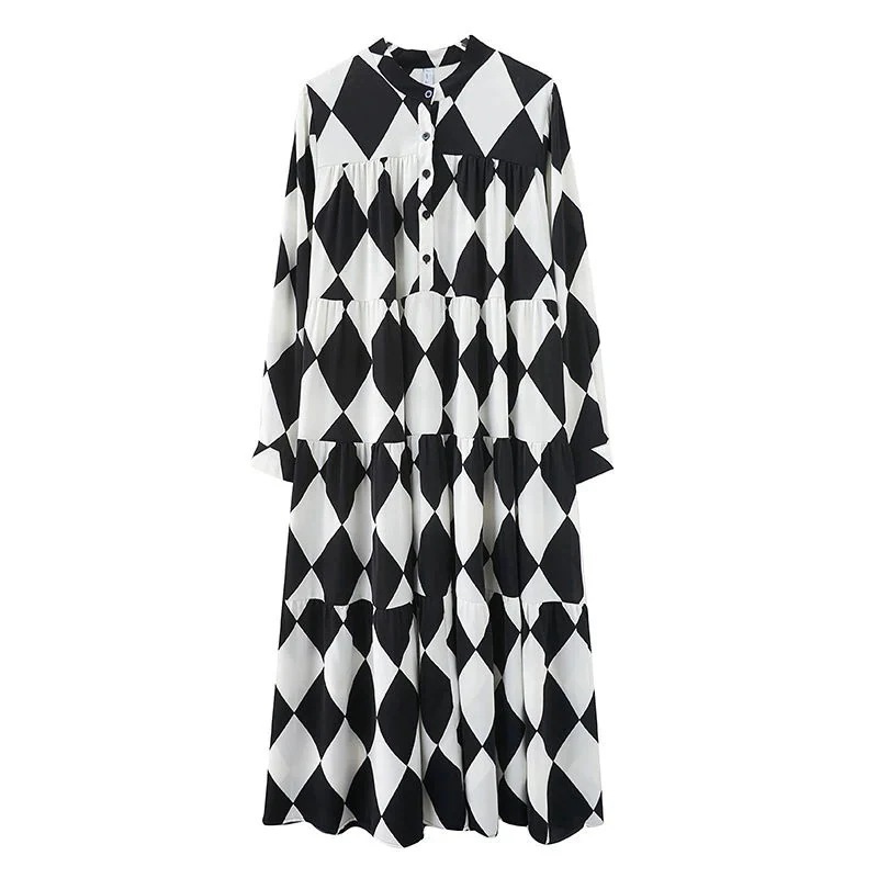 即納可愛いチェックワンピースロング長袖服大きいサイズレディースンシャツワンピース着痩せ効果韓国ファッション23人気新作登場370