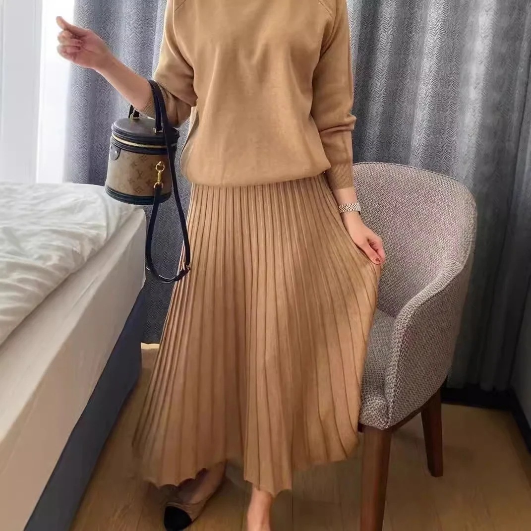 店舗人気韓国人気 ロングスカート セットアップ 二点セット カシミヤタッチ エレガントでで粋な 気質 無地 裏起毛スカート 百褶 スカート 垂れ感 着痩せ インナー 上下セット 通勤410