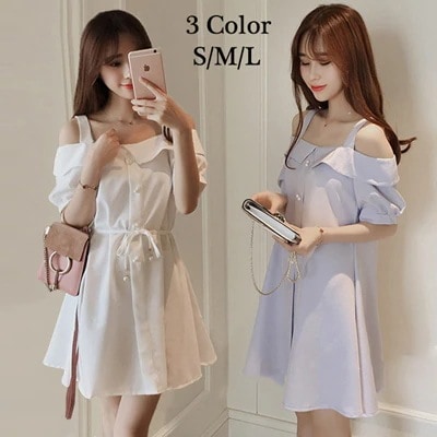 ワンピース オフショルダーワンピース トレンドアイテム Aラインワンピ ルーズライン フリル袖ワンピ チュニック カットソー ストライプ ボーダー ナチュラル ストライプ柄 無地328